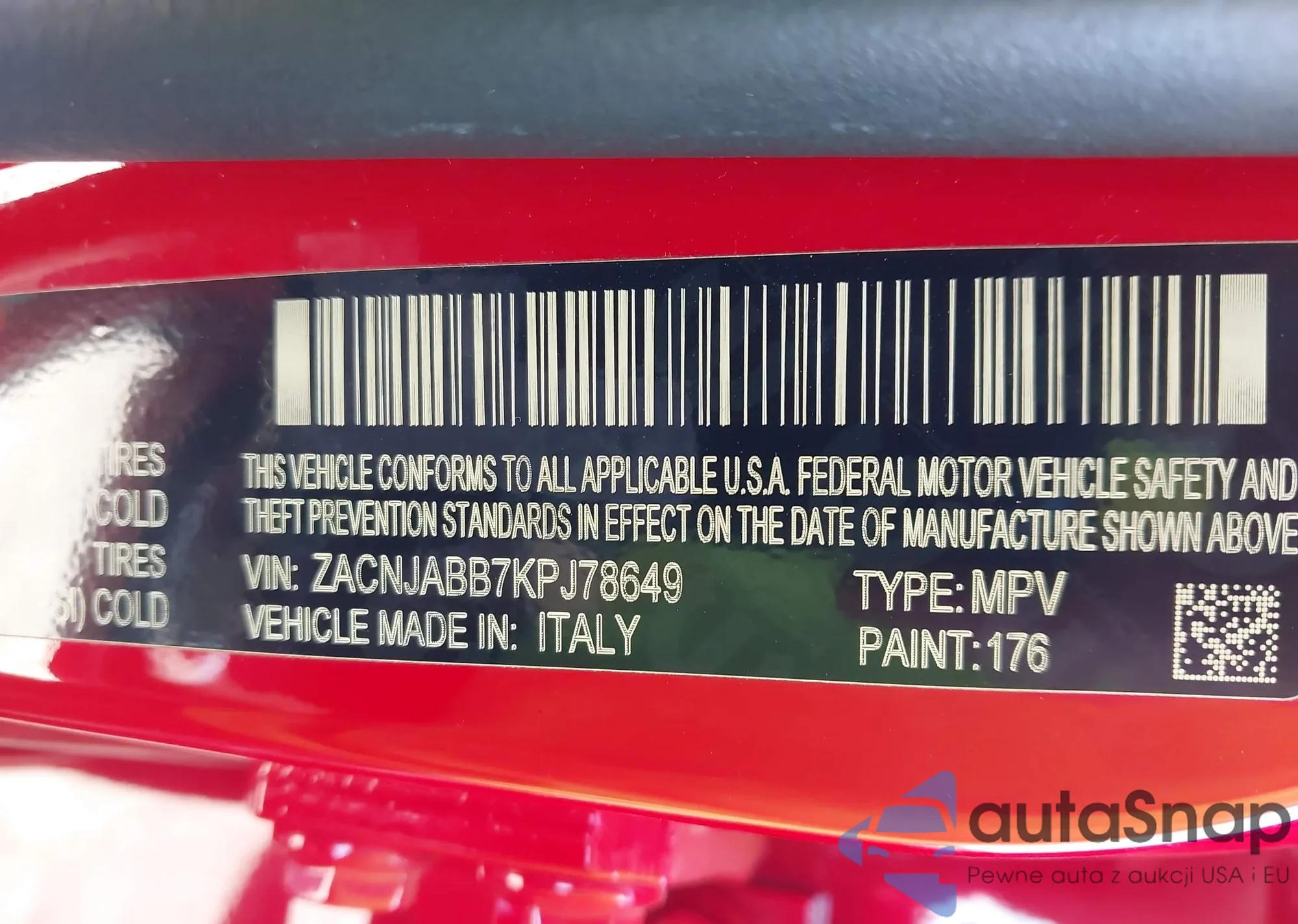 LOT: 43045205 VIN: ZACNJABB7KPJ78649
