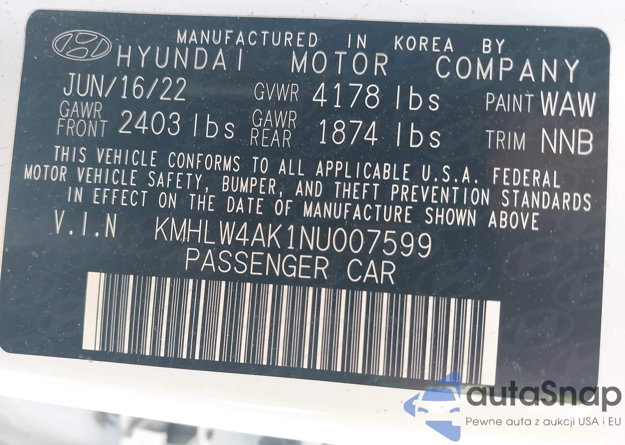 • VIN KMHLW4AK1NU007599