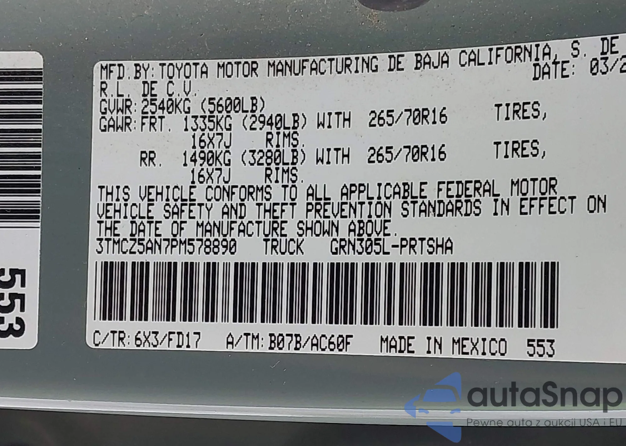 • VIN 3TMCZ5AN7PM578890