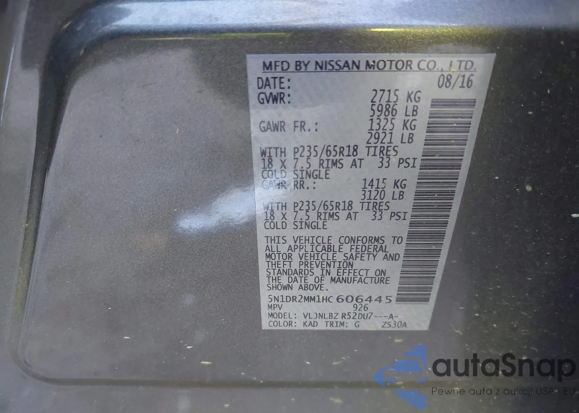 LOT: 43643289 VIN: 5N1DR2MM1HC606445