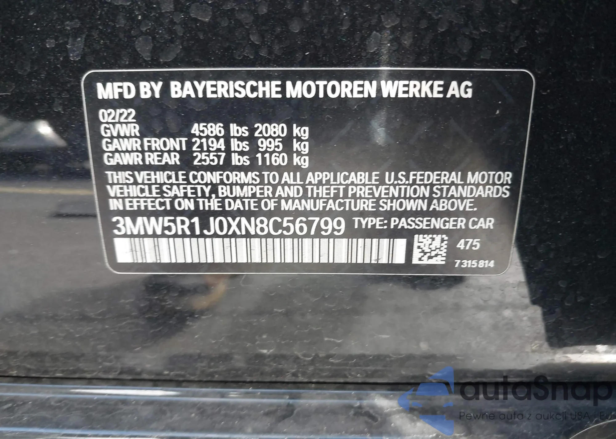 • VIN 3MW5R1J0XN8C56799