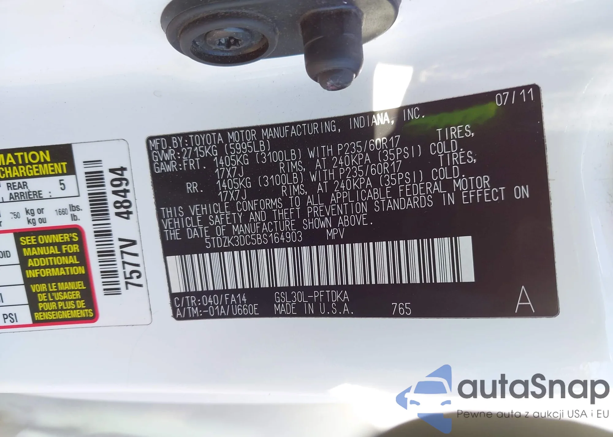 LOT: 43248299 VIN: 5TDZK3DC5BS164903