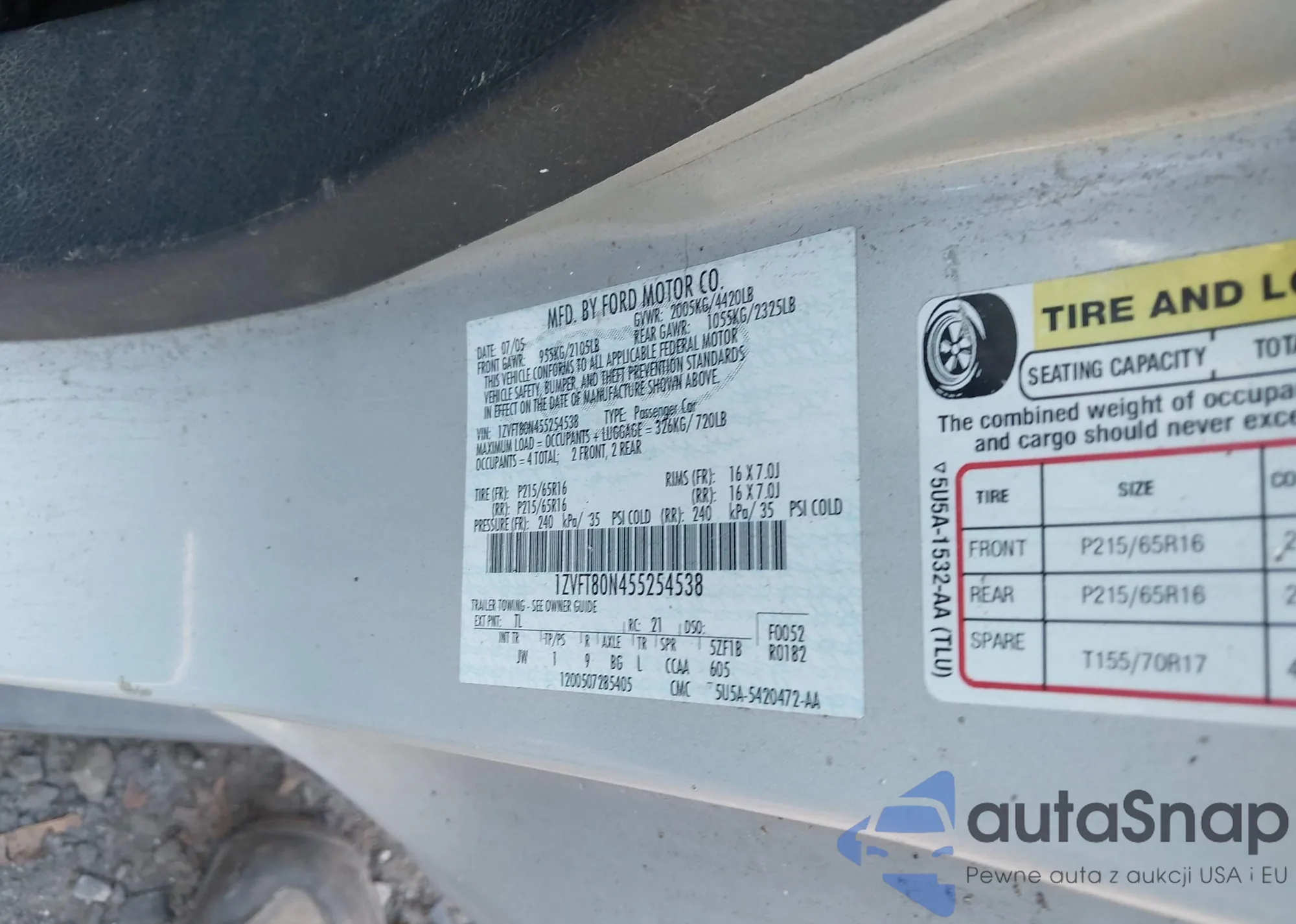 LOT: 43631957 VIN: 1ZVFT80N455254538