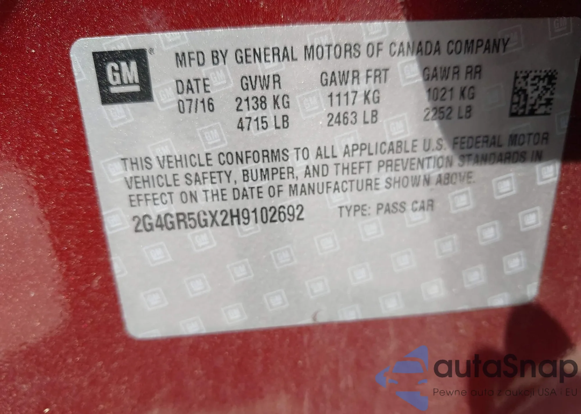 • VIN 2G4GR5GX2H9102692