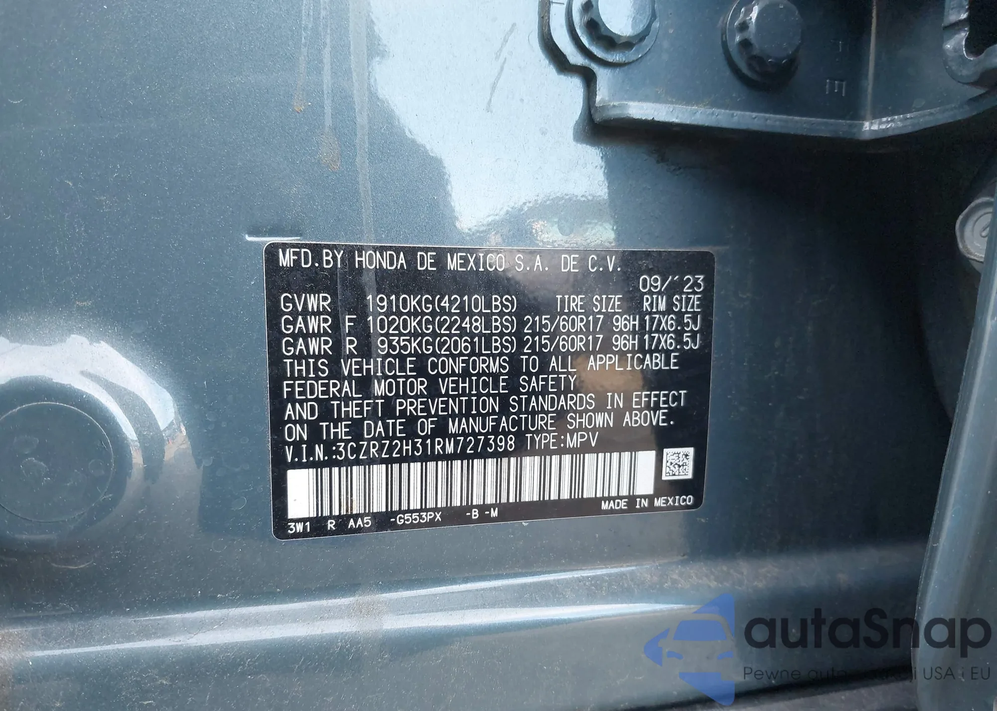 • VIN 3CZRZ2H31RM727398