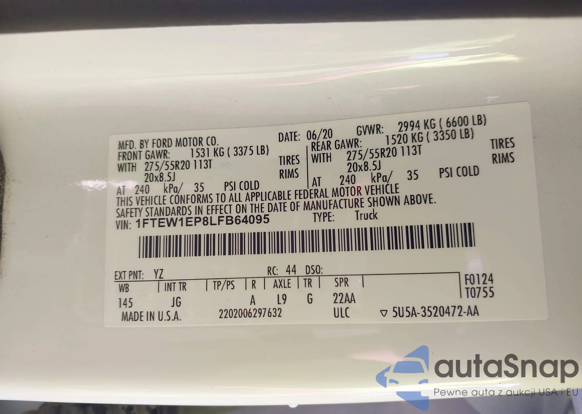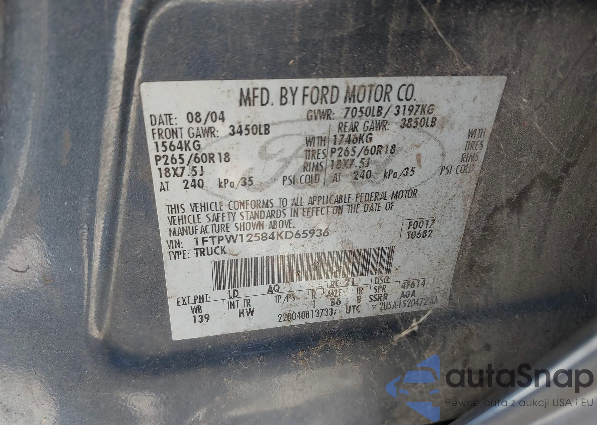 LOT: 43597024 VIN: 1FTPW12584KD65936