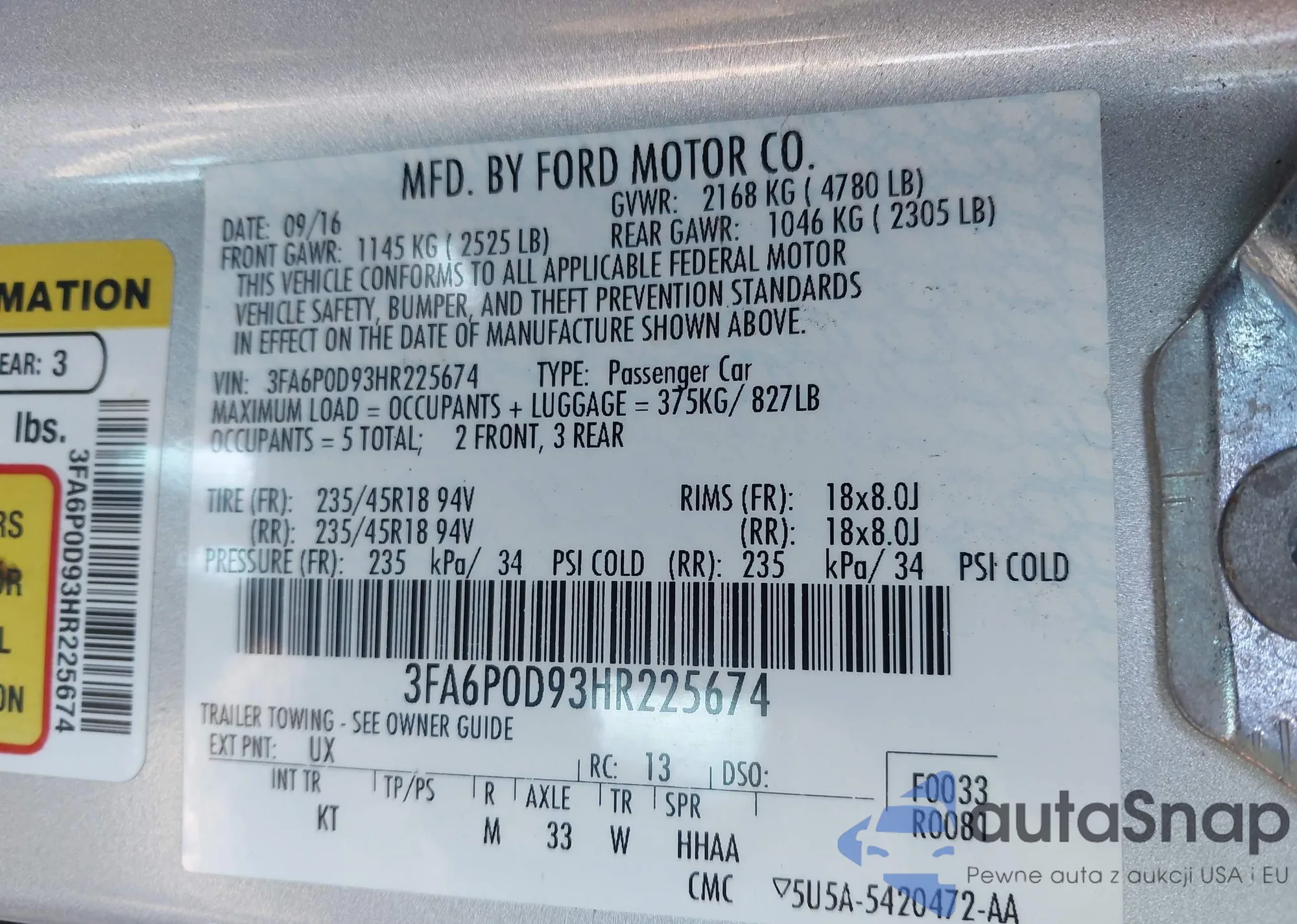 LOT: 43653931 VIN: 1FA6P0H70E5405007