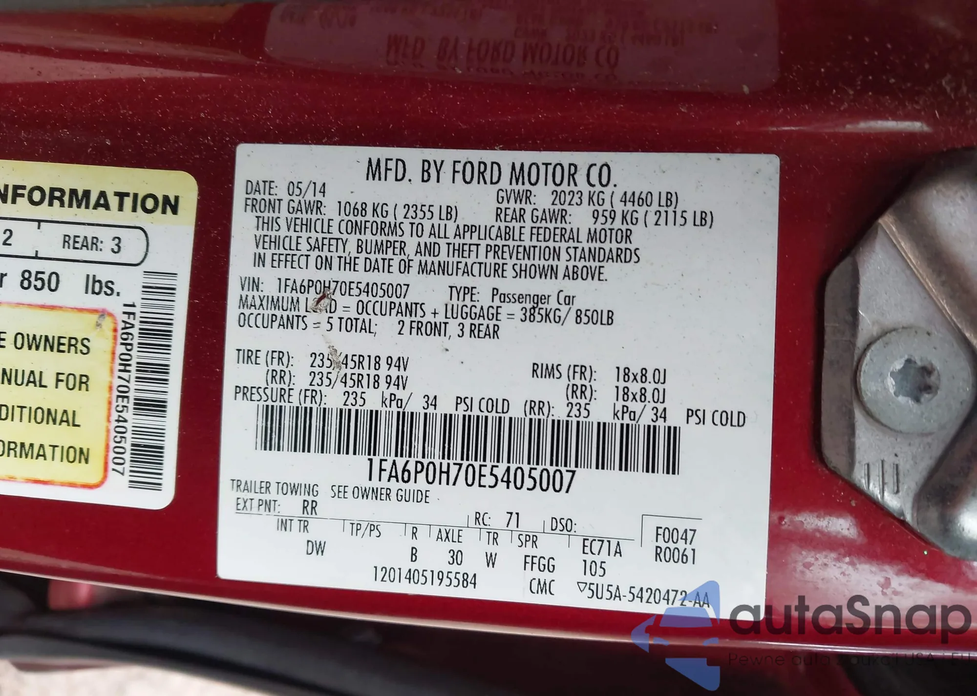 • VIN 1FA6P0H70E5405007