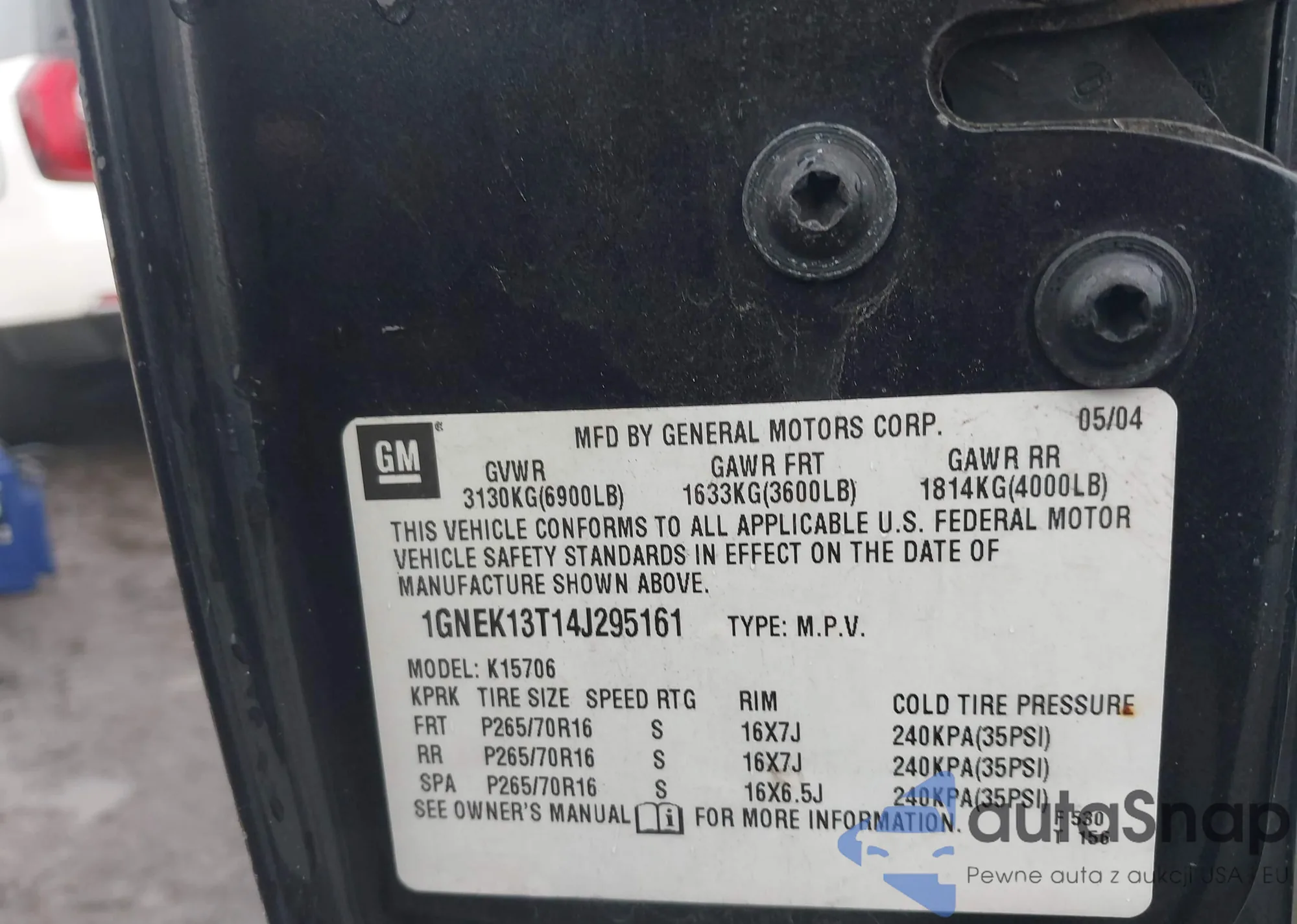 • VIN 1GNEK13T14J295161