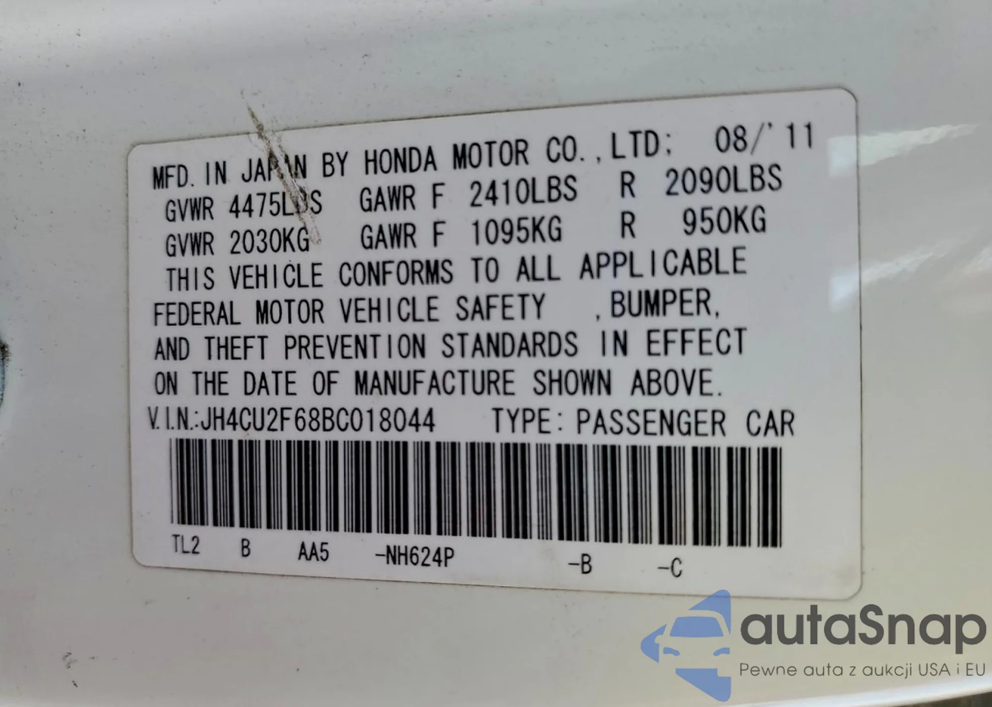 • VIN 4T1BF1FKXCU058826