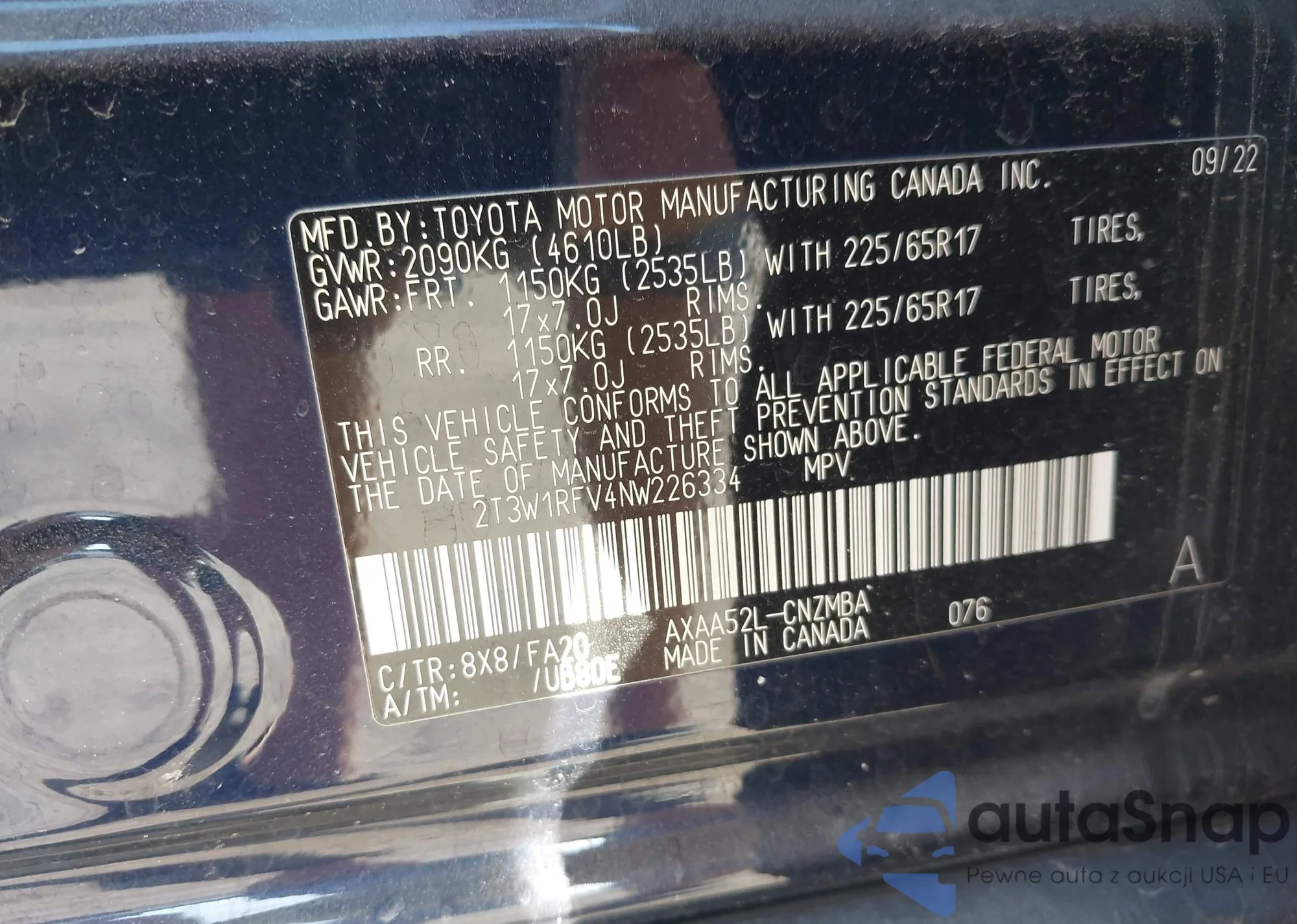 • VIN 2T3W1RFV4NW226334