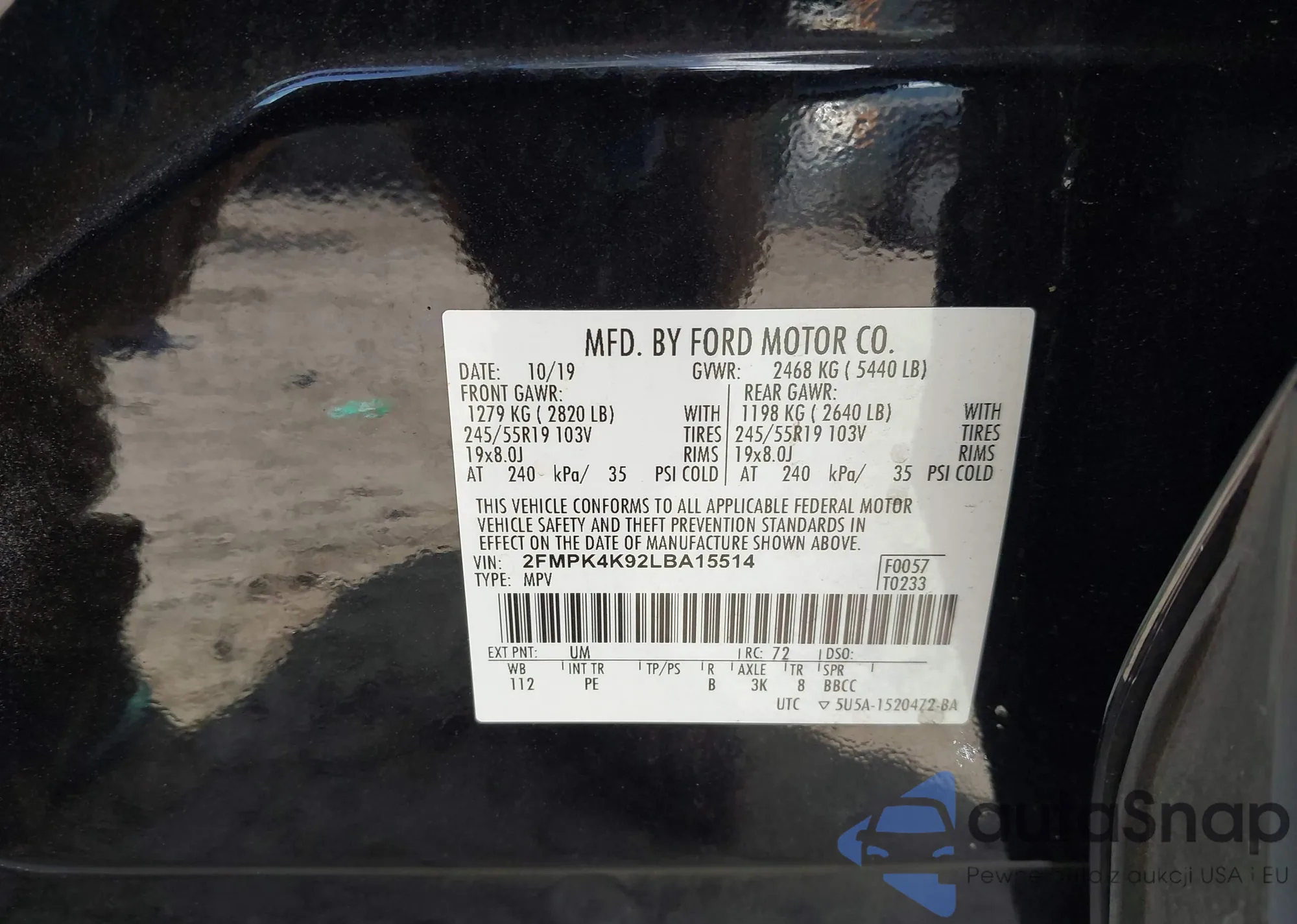 • VIN 2FMPK4K92LBA15514