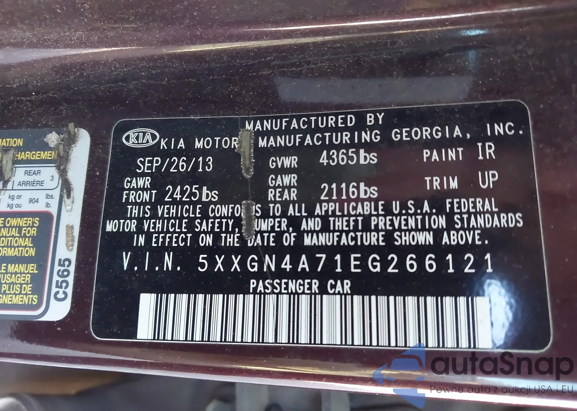 LOT: 43756934 VIN: KNDJX3AAXJ7617214
