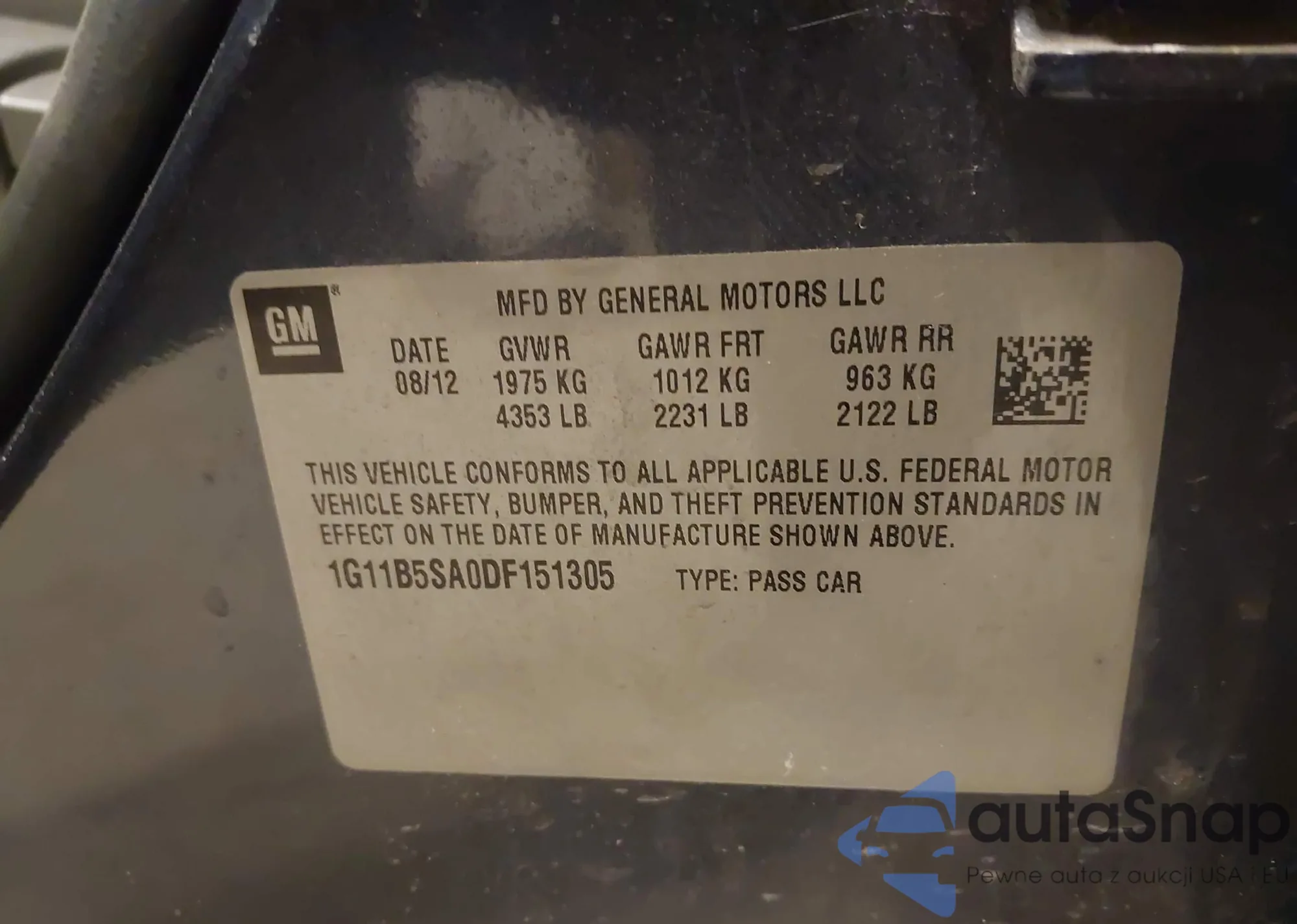 • VIN 1G11B5SA0DF151305