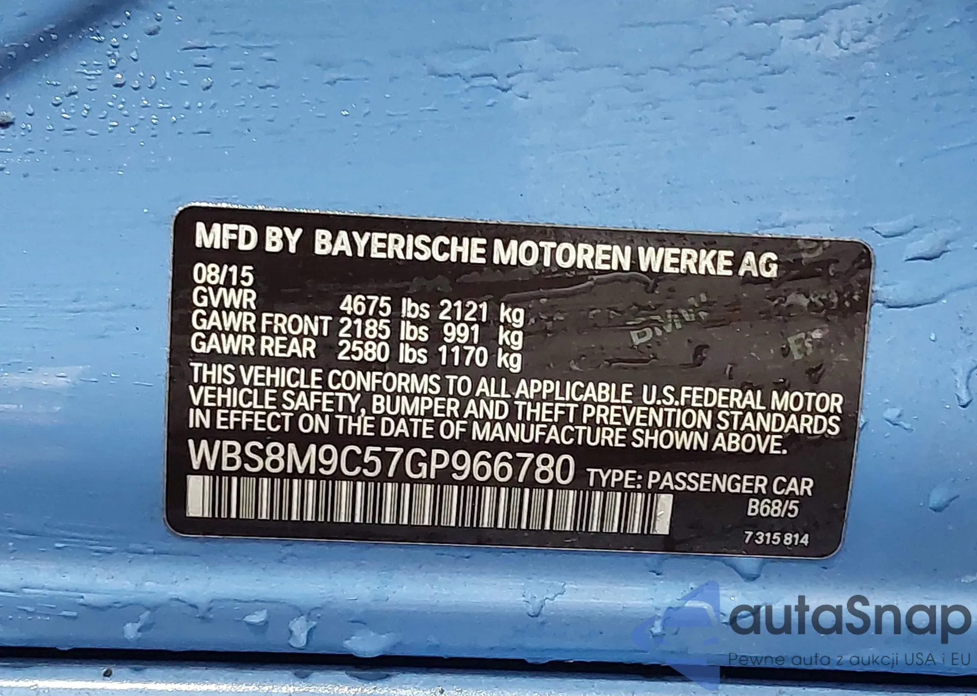 • VIN WBS8M9C57GP966780