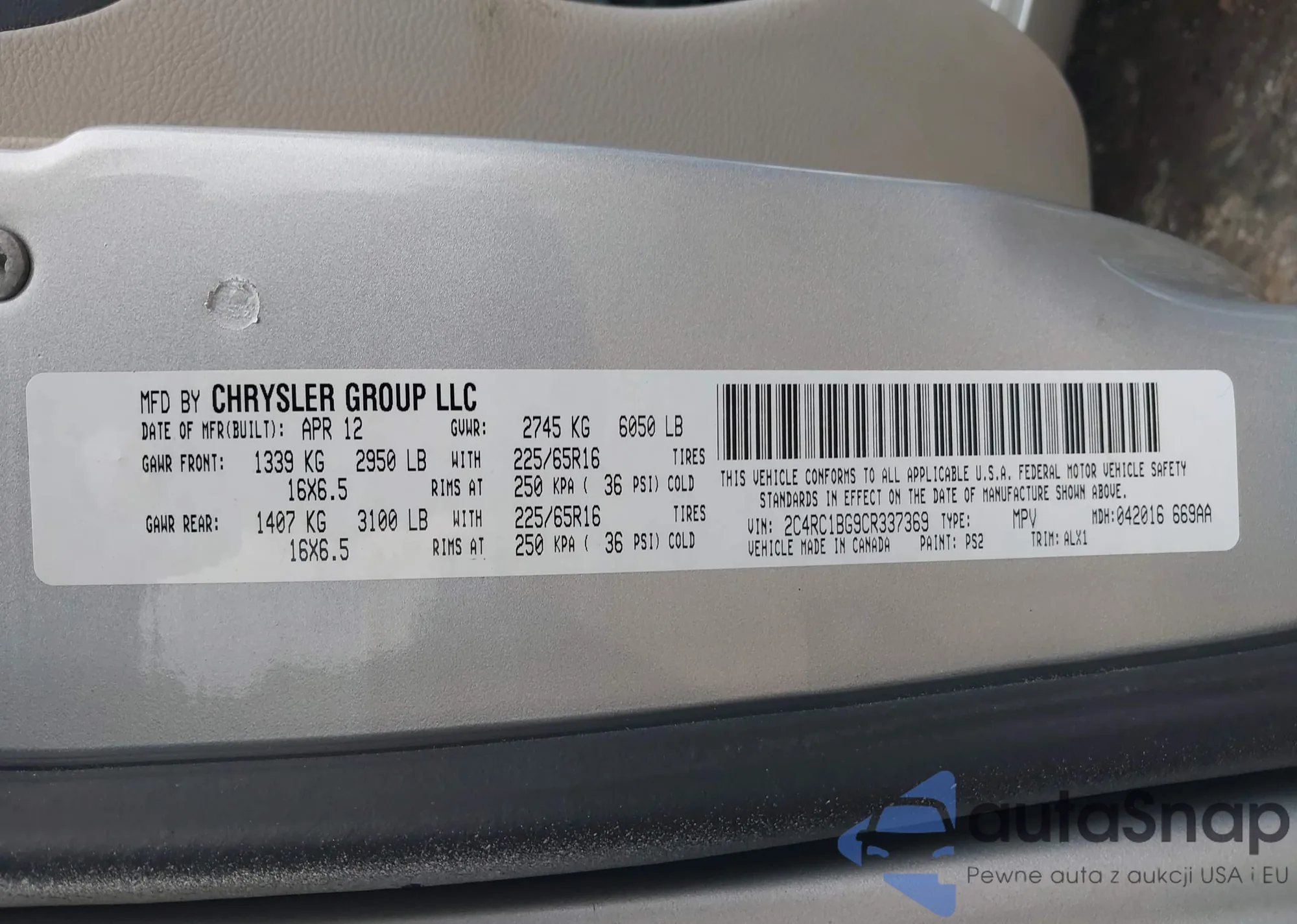 • VIN 2C4RC1BG9CR337369