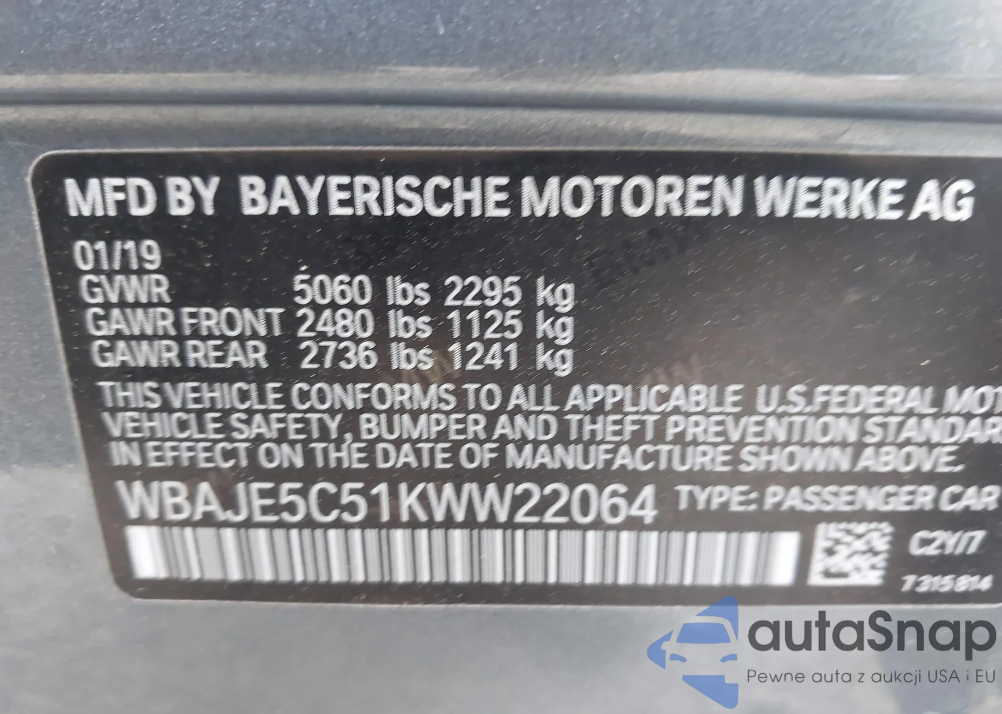 • VIN WBAJE5C51KWW22064
