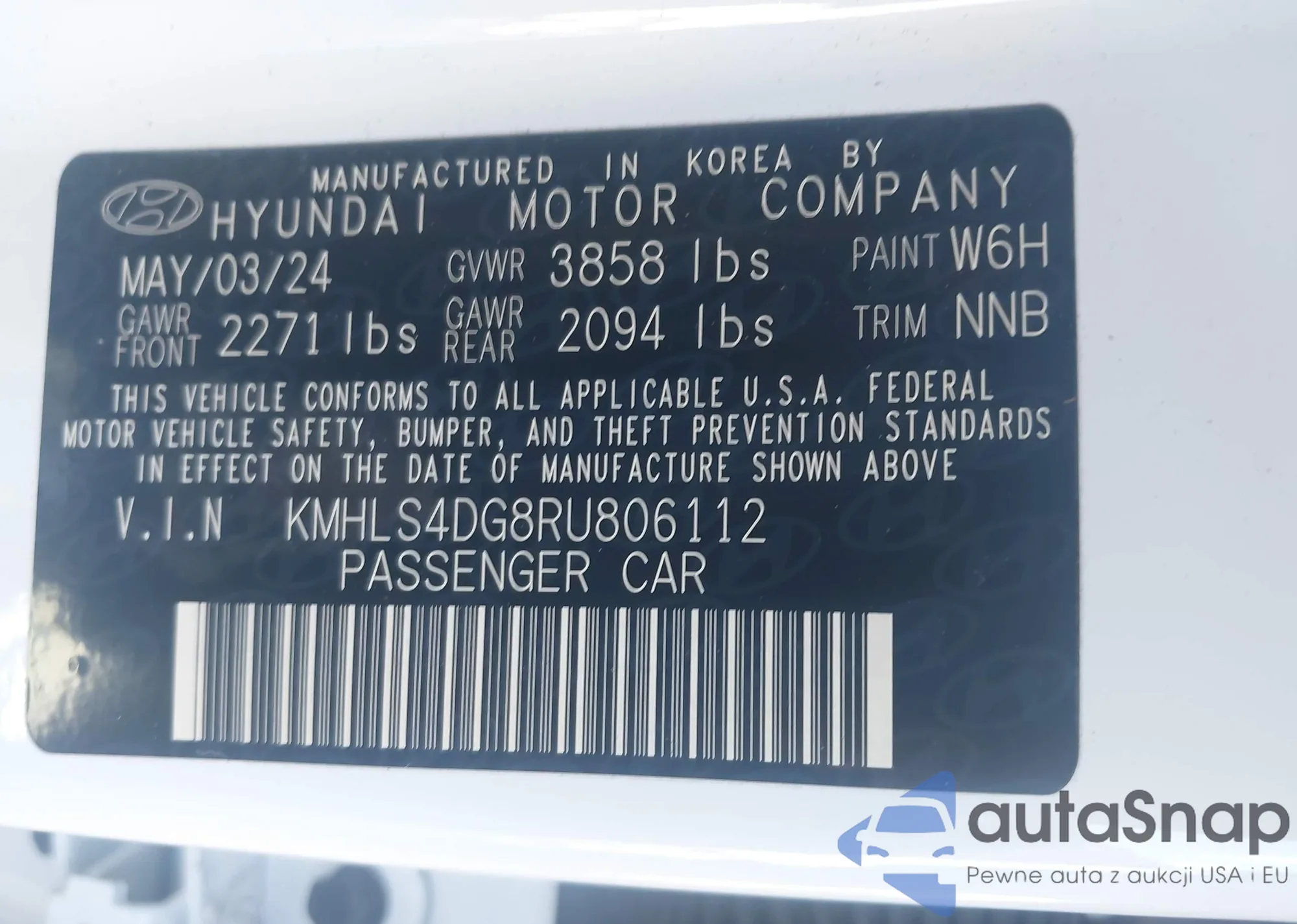 • VIN KMHLS4DG8RU806112