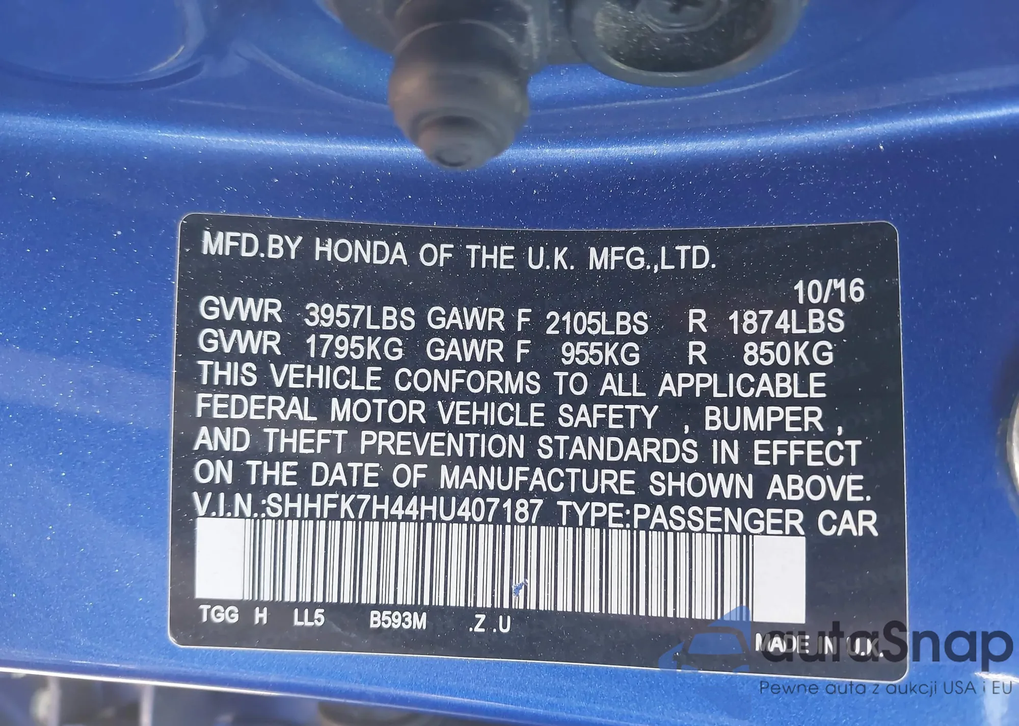 • VIN SHHFK7H44HU407187