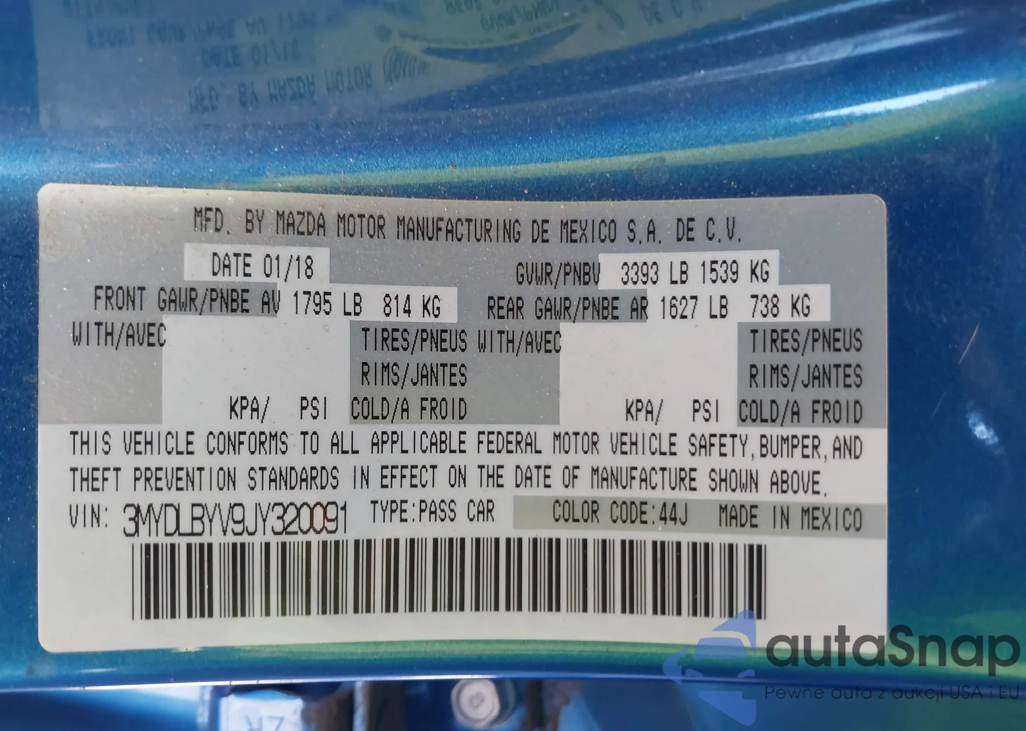 • VIN 3MYDLBYV9JY320091