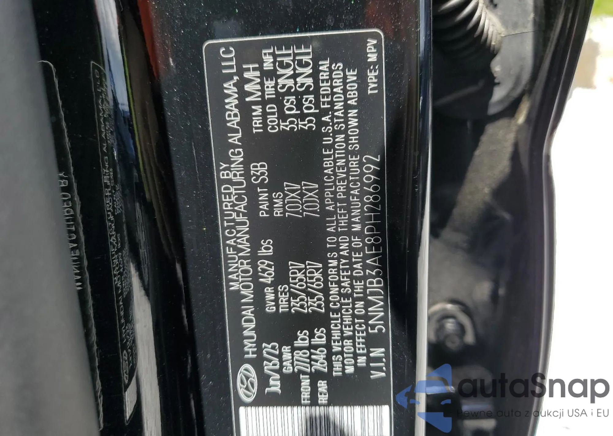 • VIN 5NMJB3AE8PH286992
