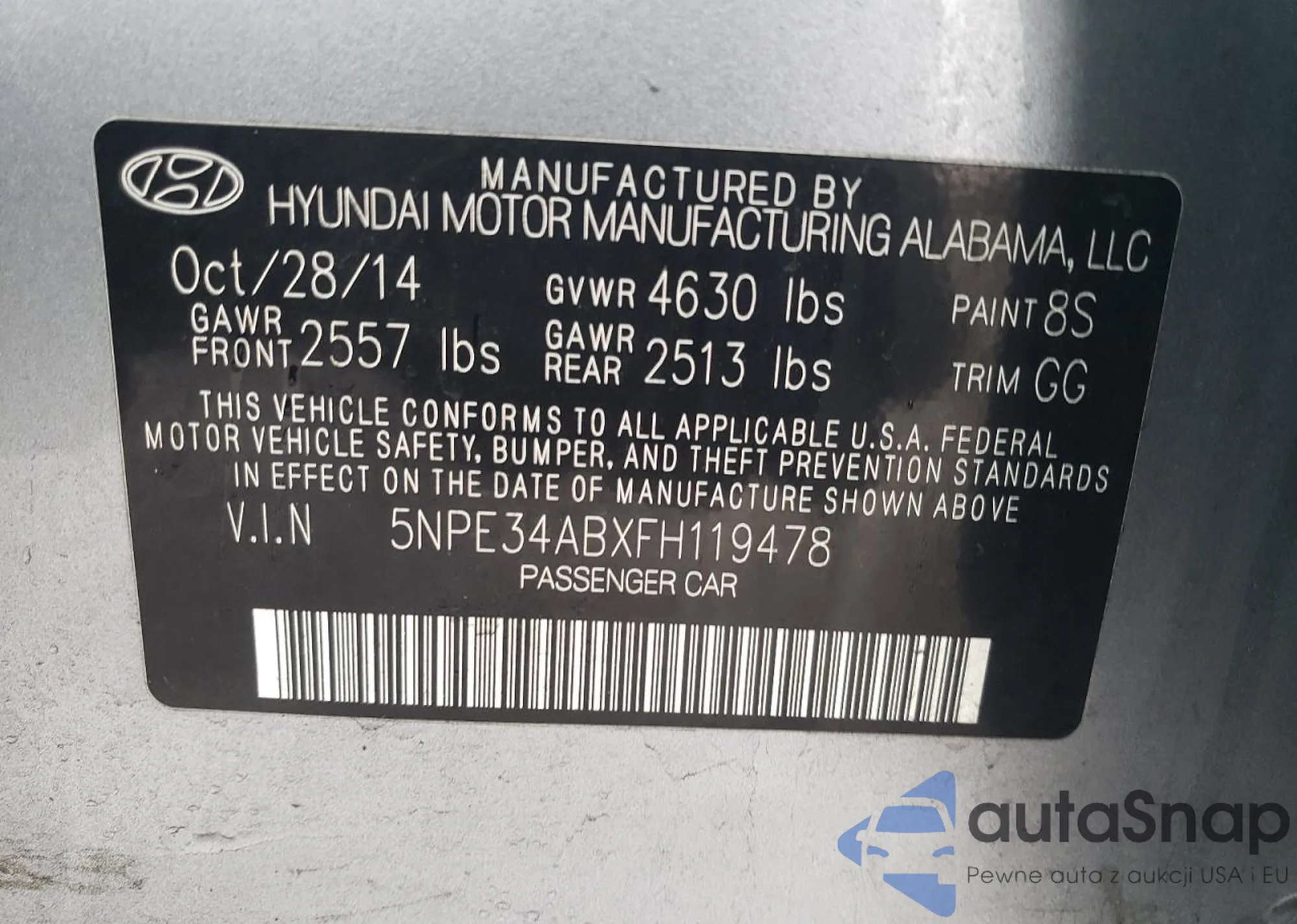 • VIN 5NPE34ABXFH119478