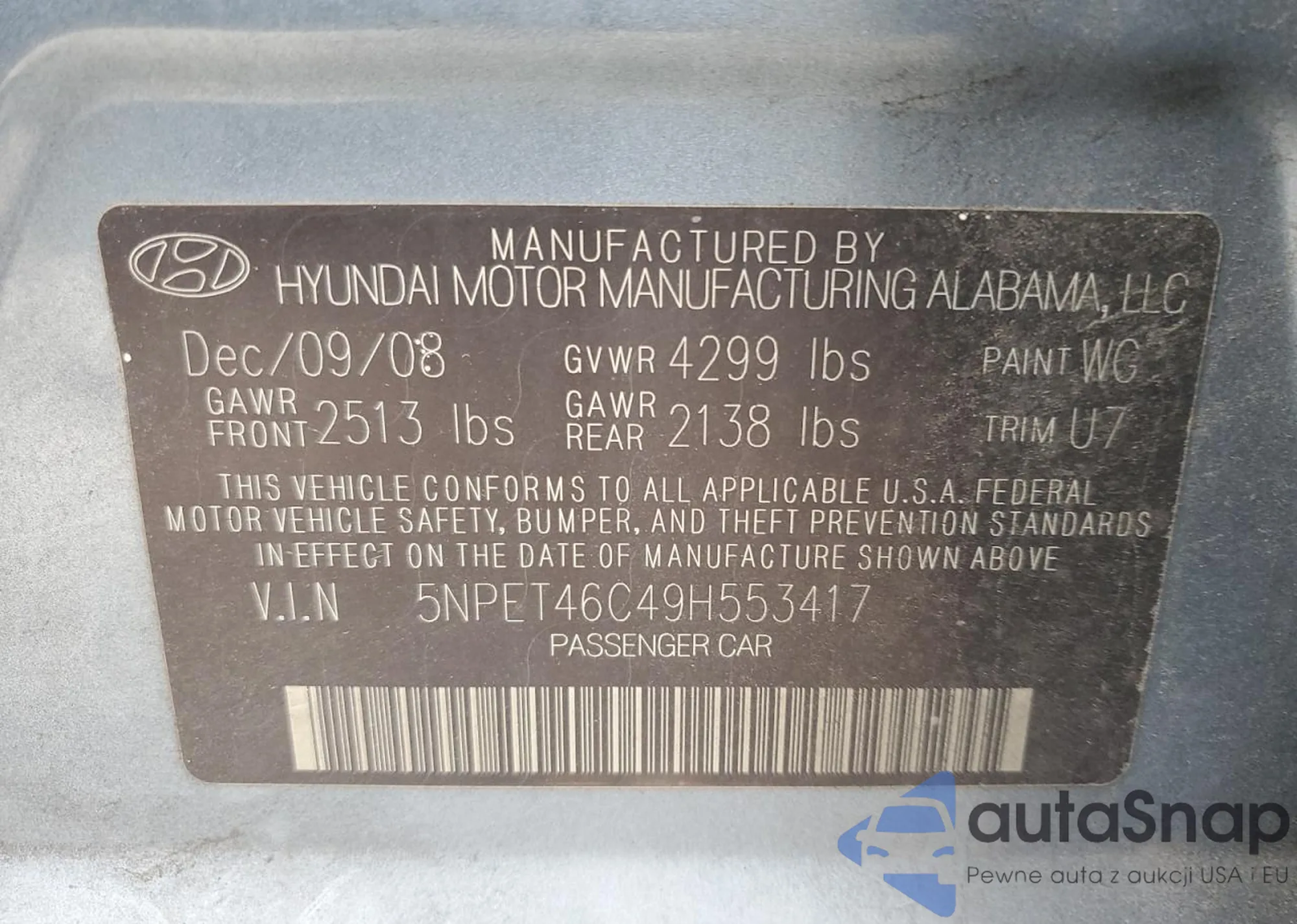 LOT: 90503985 VIN: 5NPET46C49H553417
