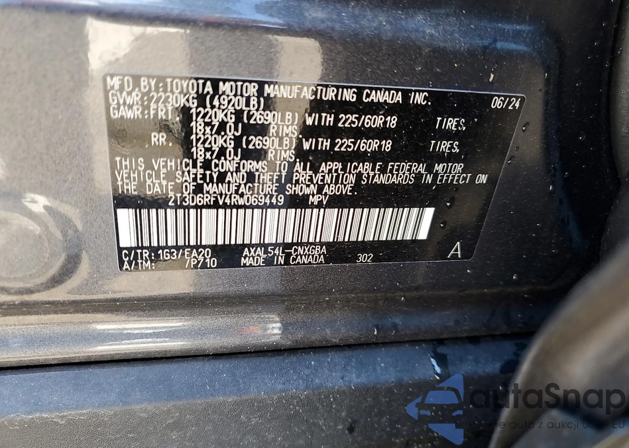 • VIN 2T3D6RFV4RW069449