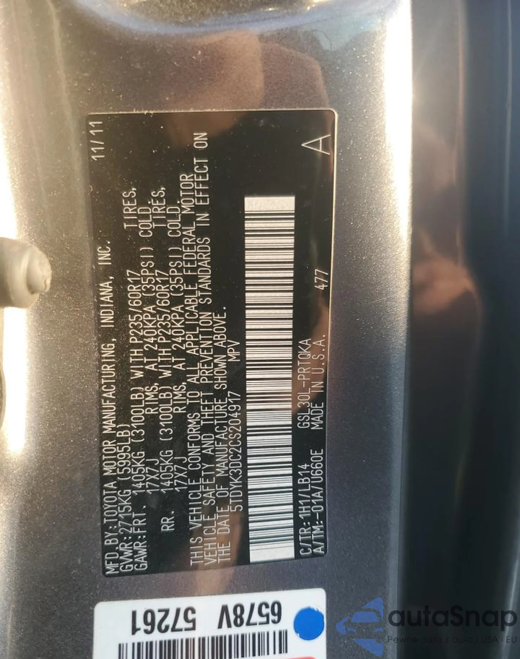 • VIN 5TDYK3DC2CS204917