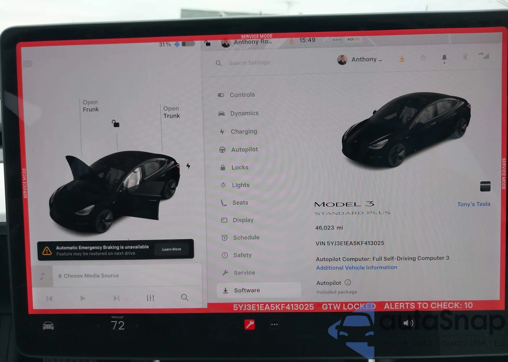 • VIN 5YJ3E1EA5KF413025