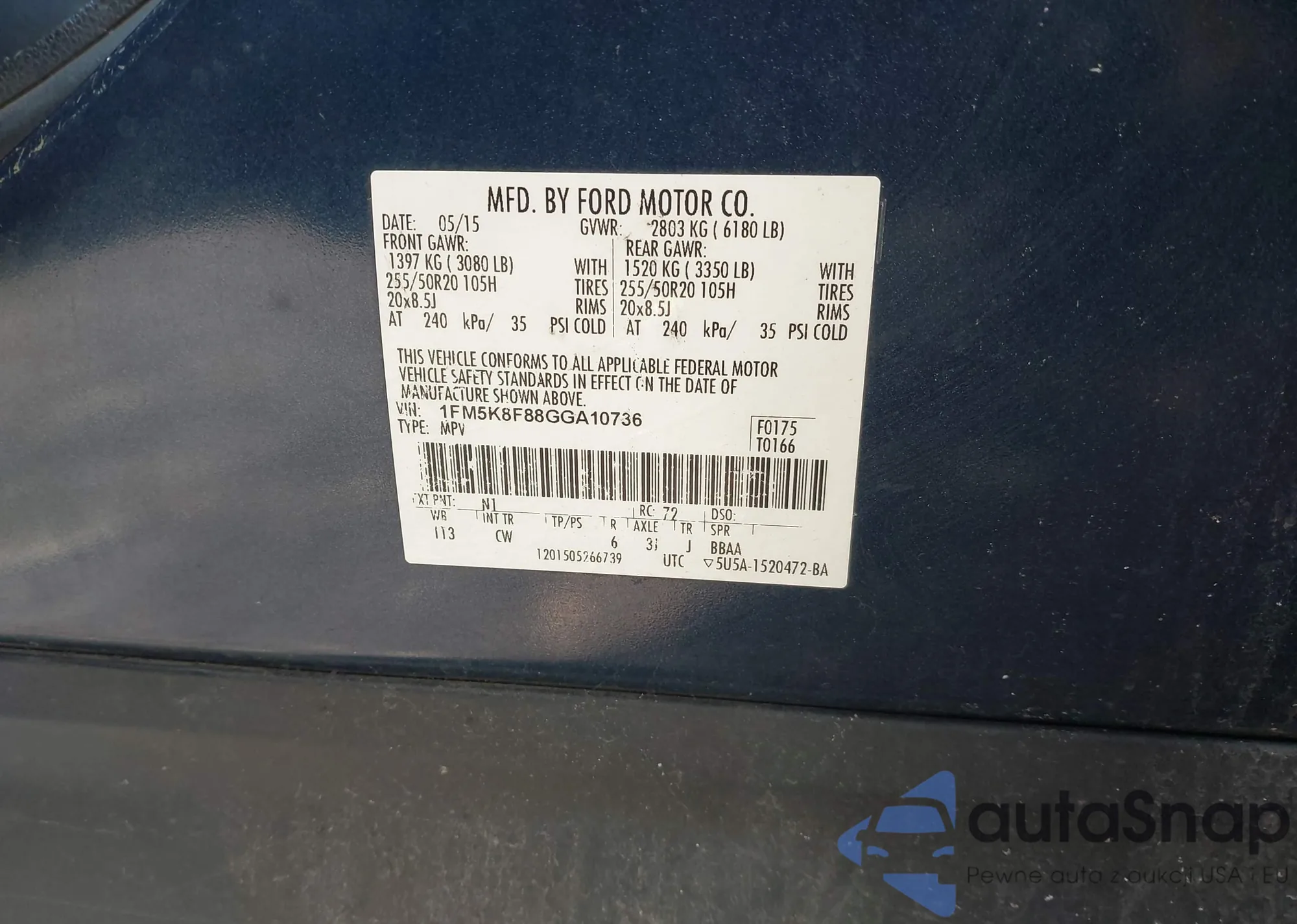 • VIN 1FM5K8F88GGA10736