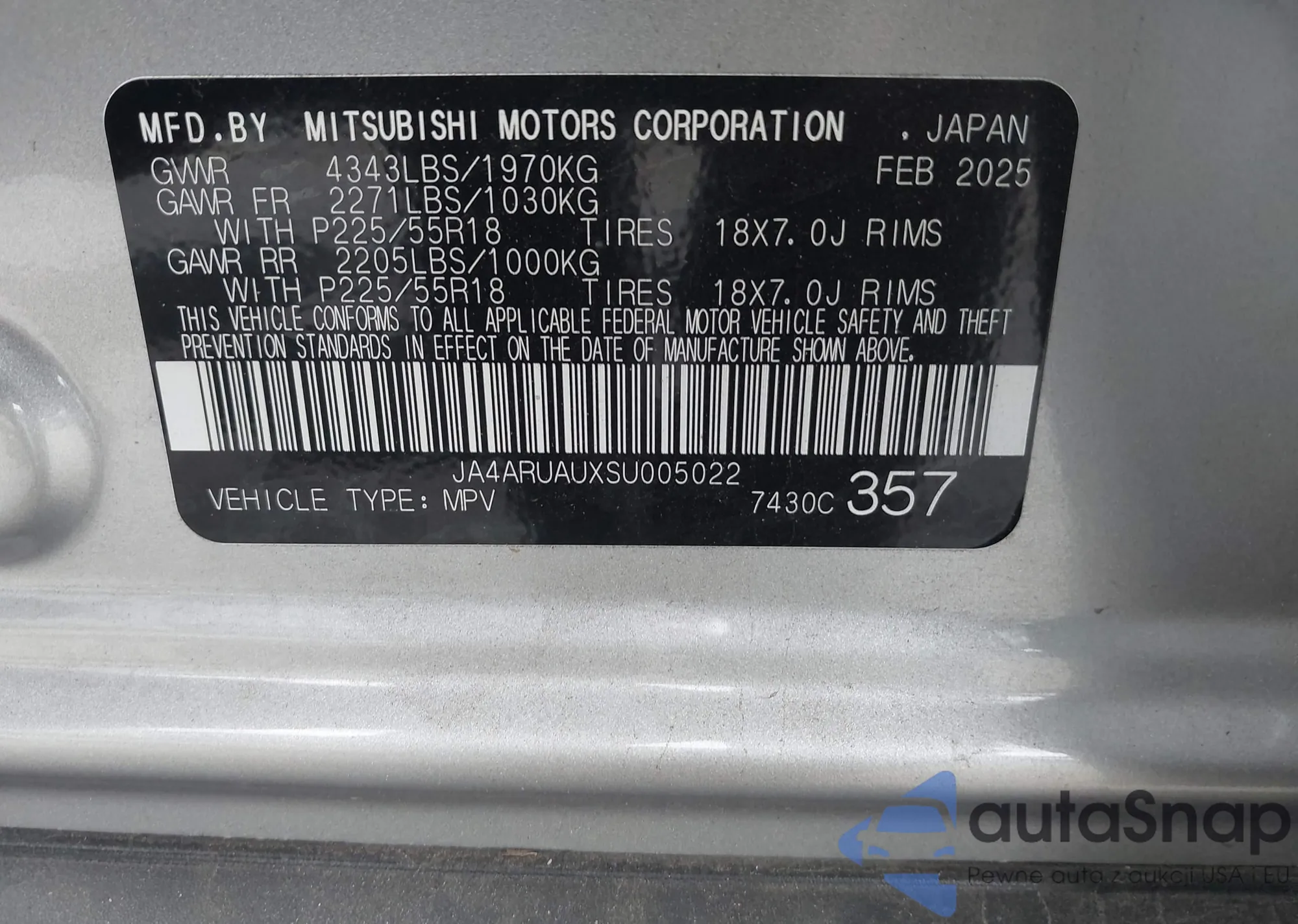 LOT: 43643992 VIN: WA1CFAFPXBA105545