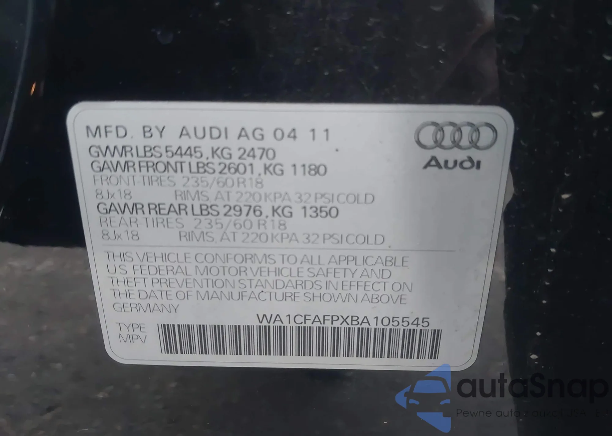 • VIN WA1CFAFPXBA105545