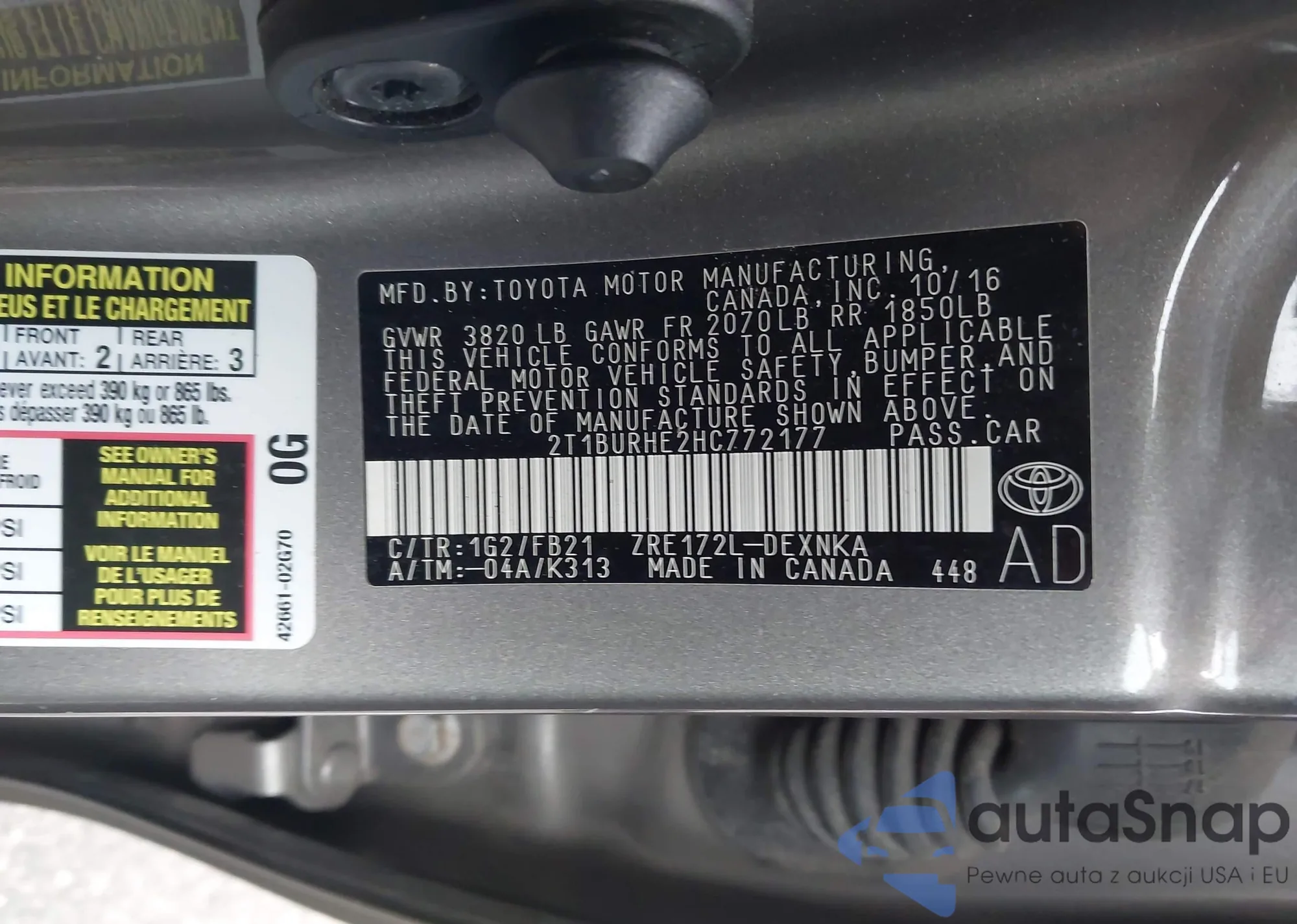 • VIN 2T1BURHE2HC772177