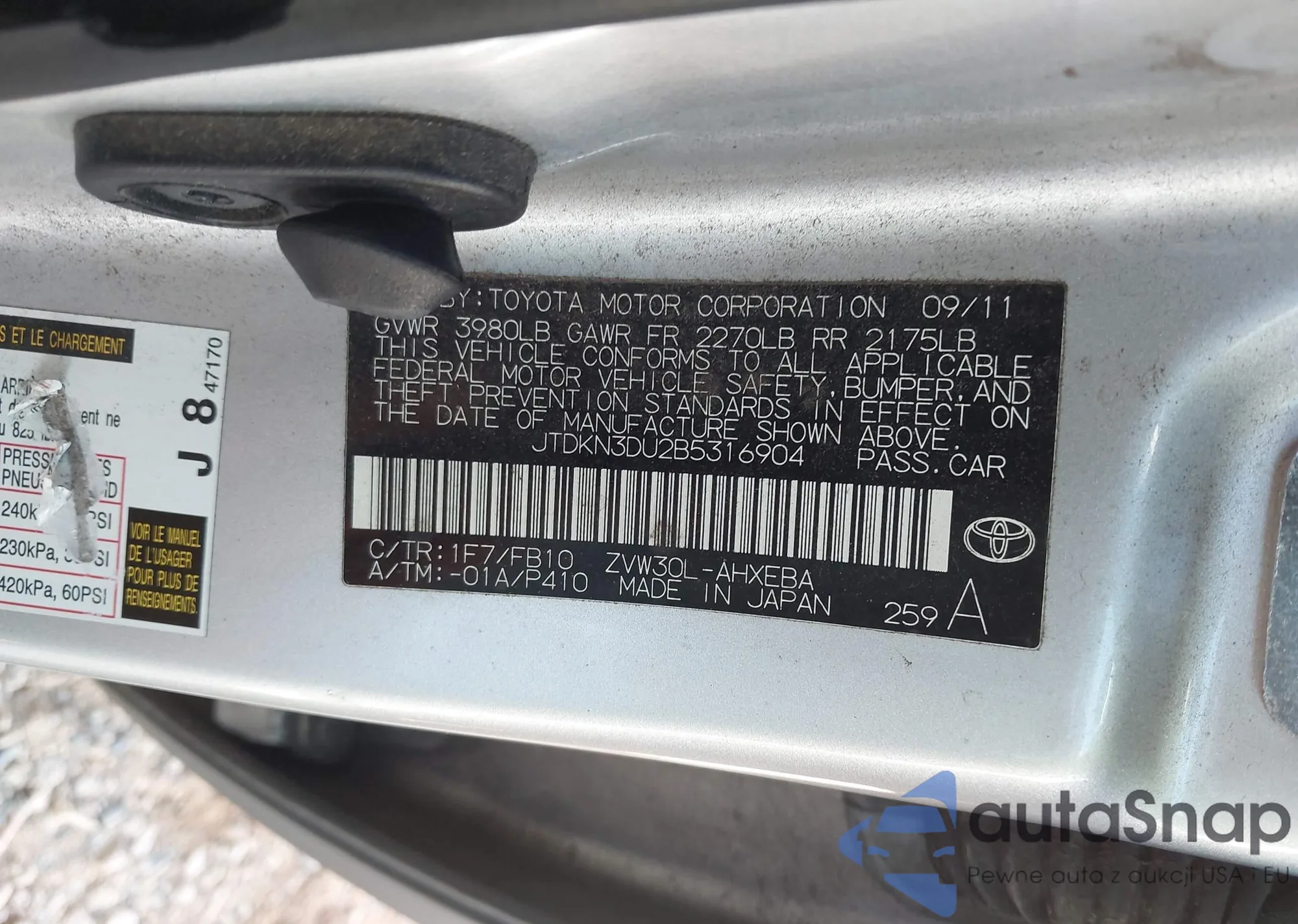 LOT: 43769729 VIN: JTDKN3DU2B5316904