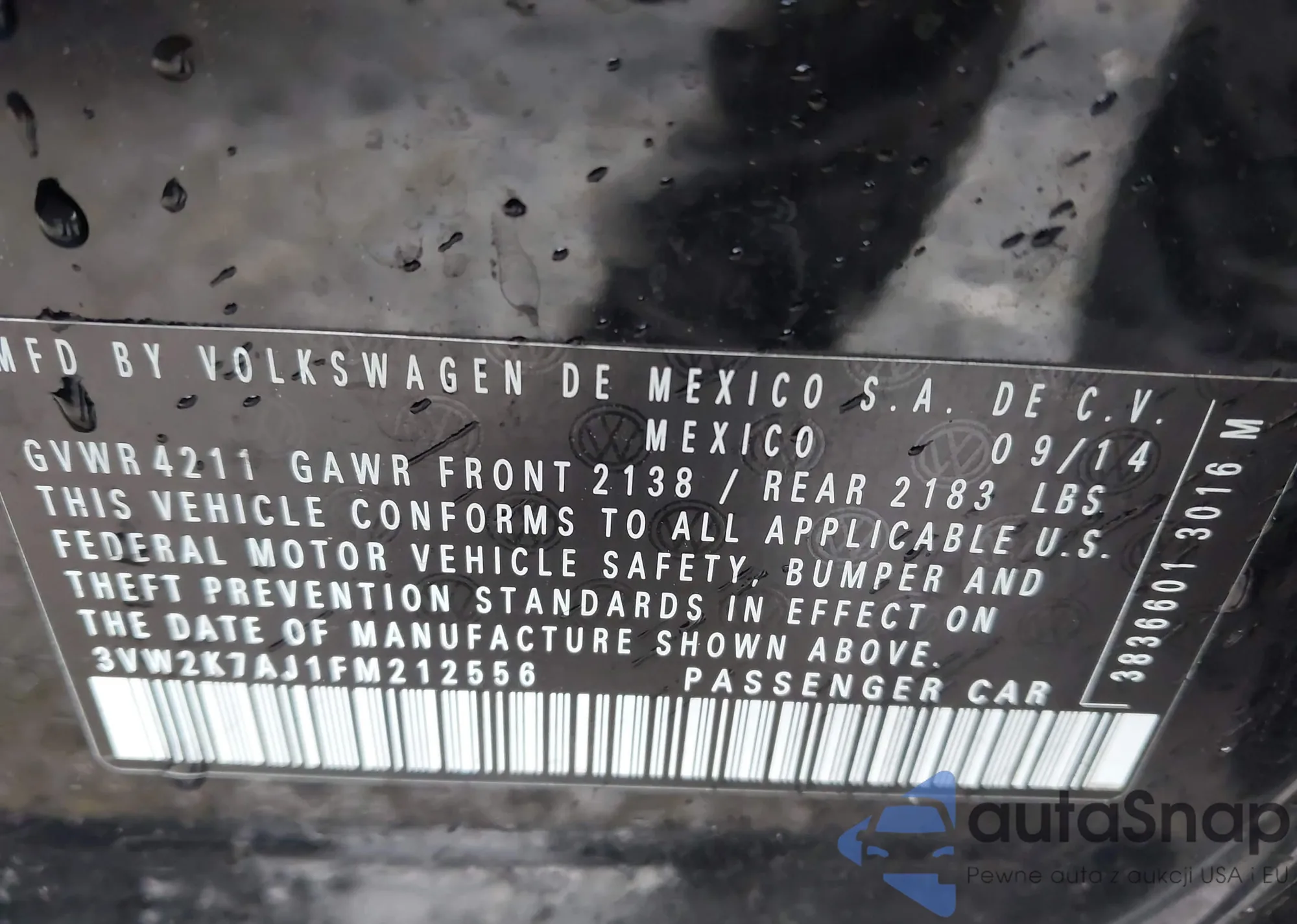 • VIN 3VW2K7AJ1FM212556