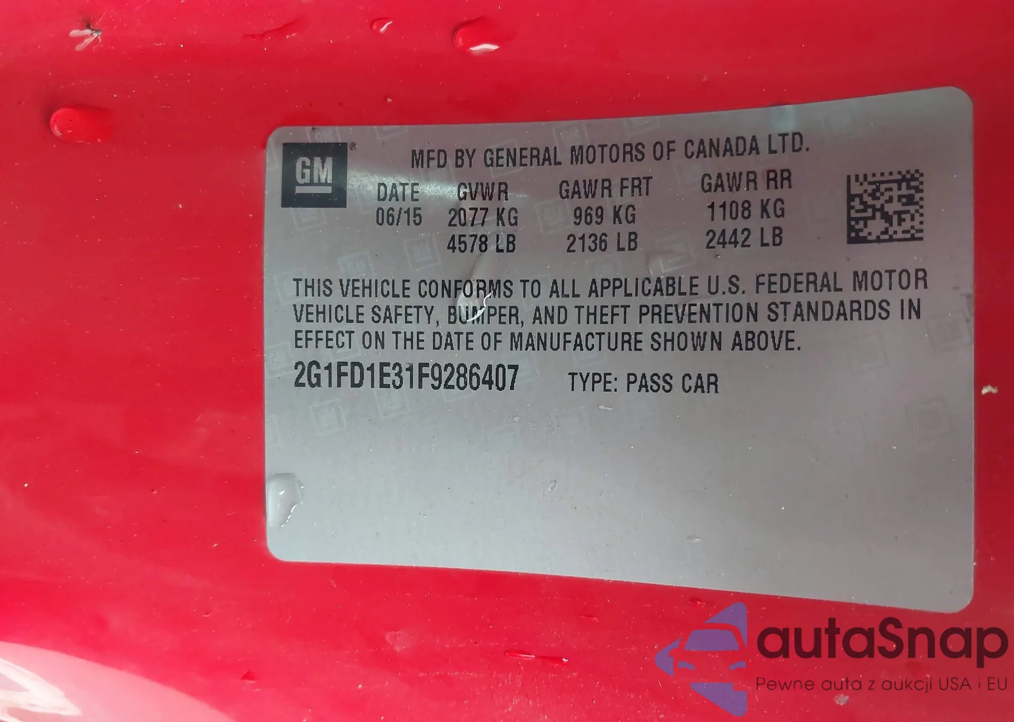 LOT: 43649308 VIN: 2G1FD1E31F9286407