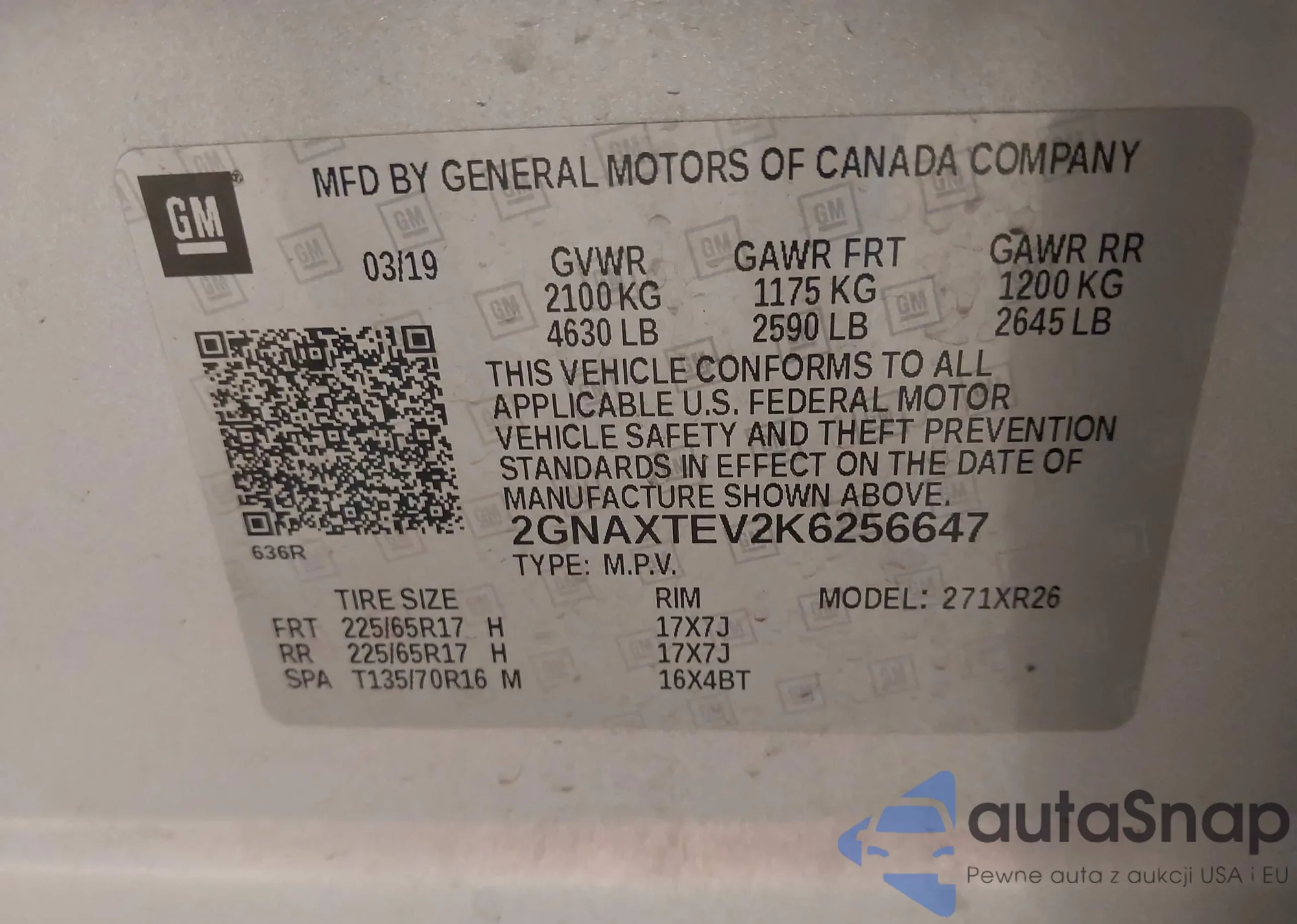LOT: 43295295 VIN: JTKJF5C75D3058661