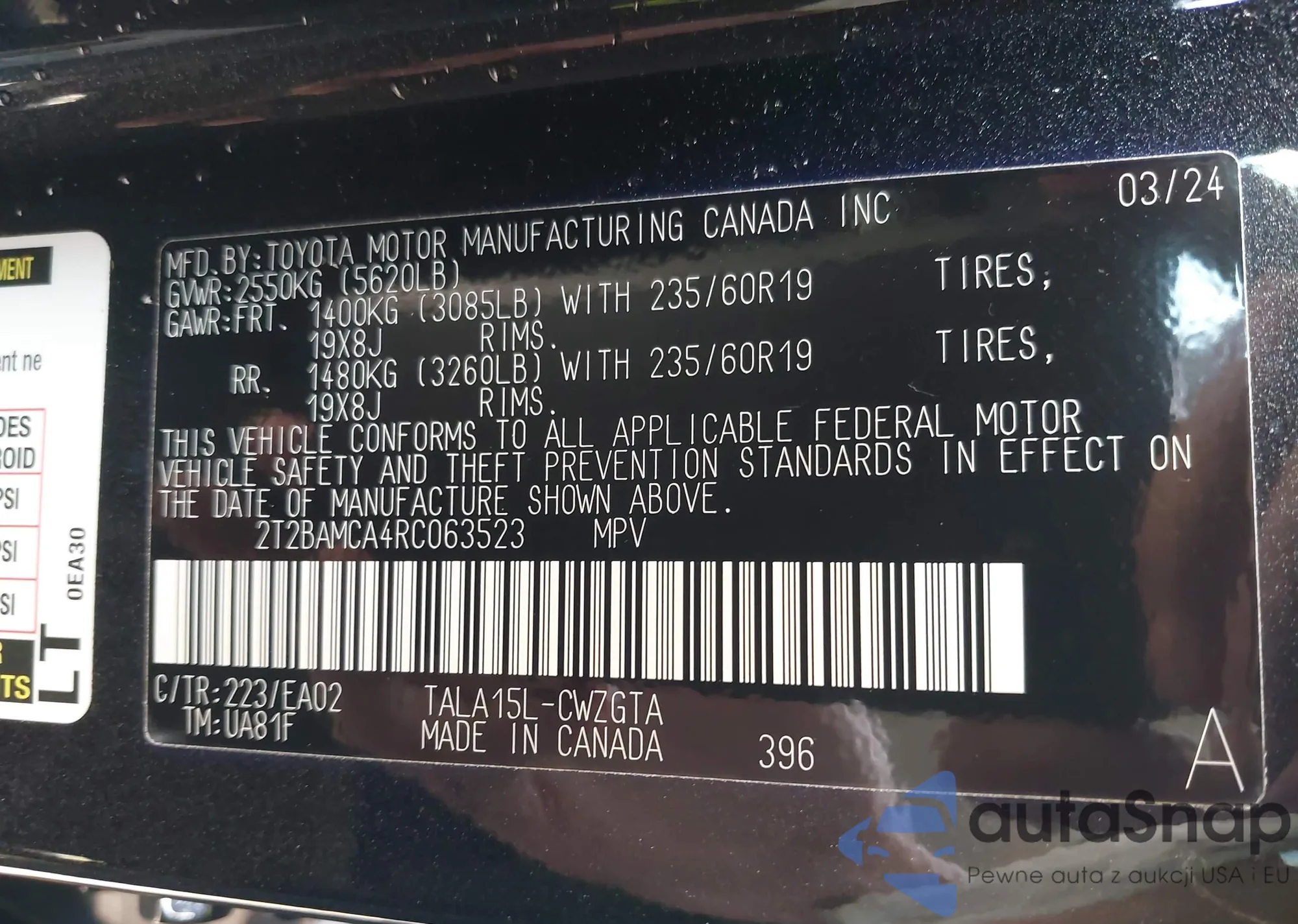 LOT: 43146446 VIN: 2T2BAMCA4RC063523