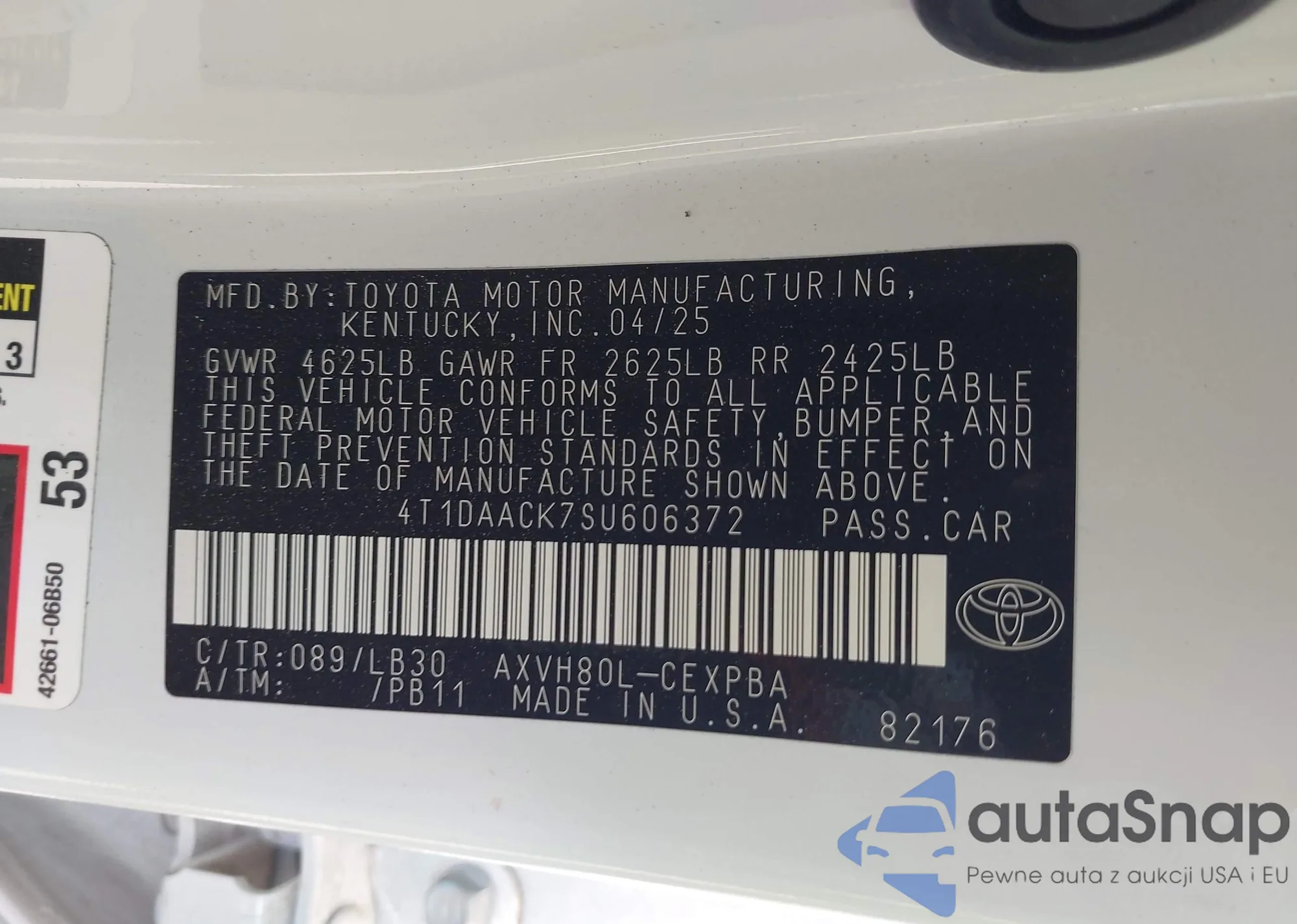 • VIN 4T1DAACK7SU606372