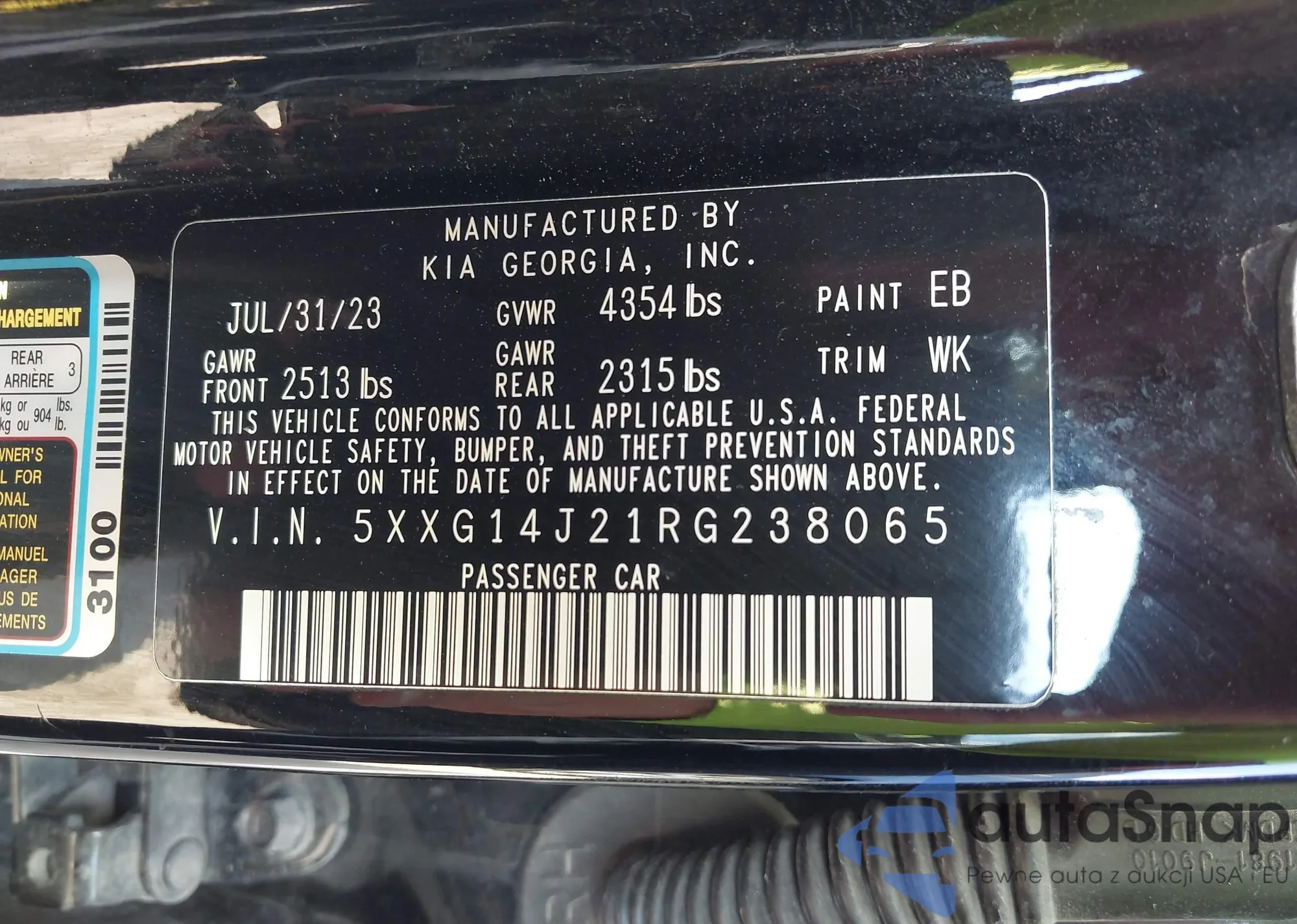 • VIN 5XXG14J21RG238065