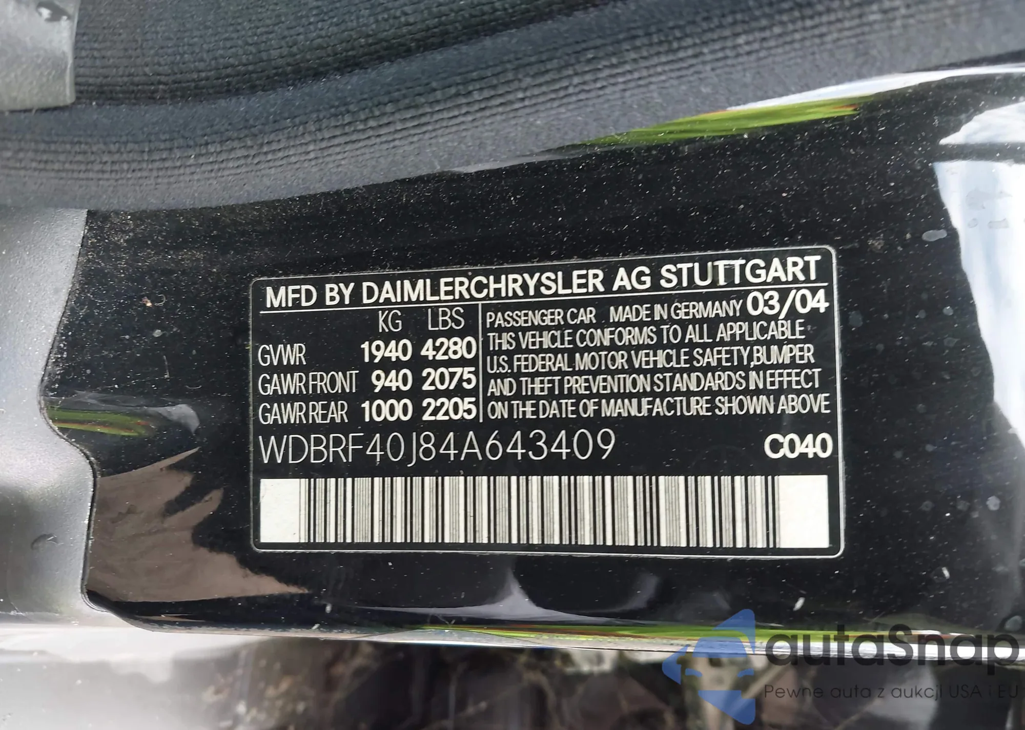 LOT: 43352118 VIN: WDBRF40J84A643409