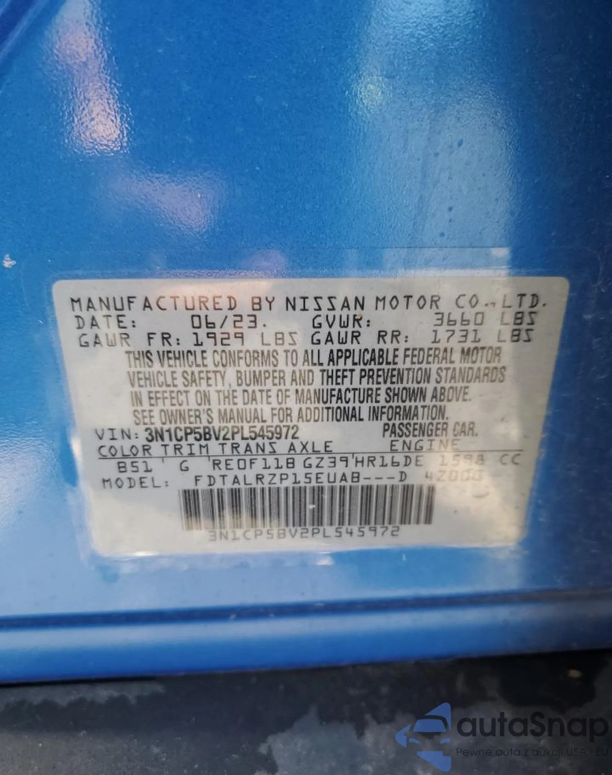 • VIN 3N1CP5BV2PL545972