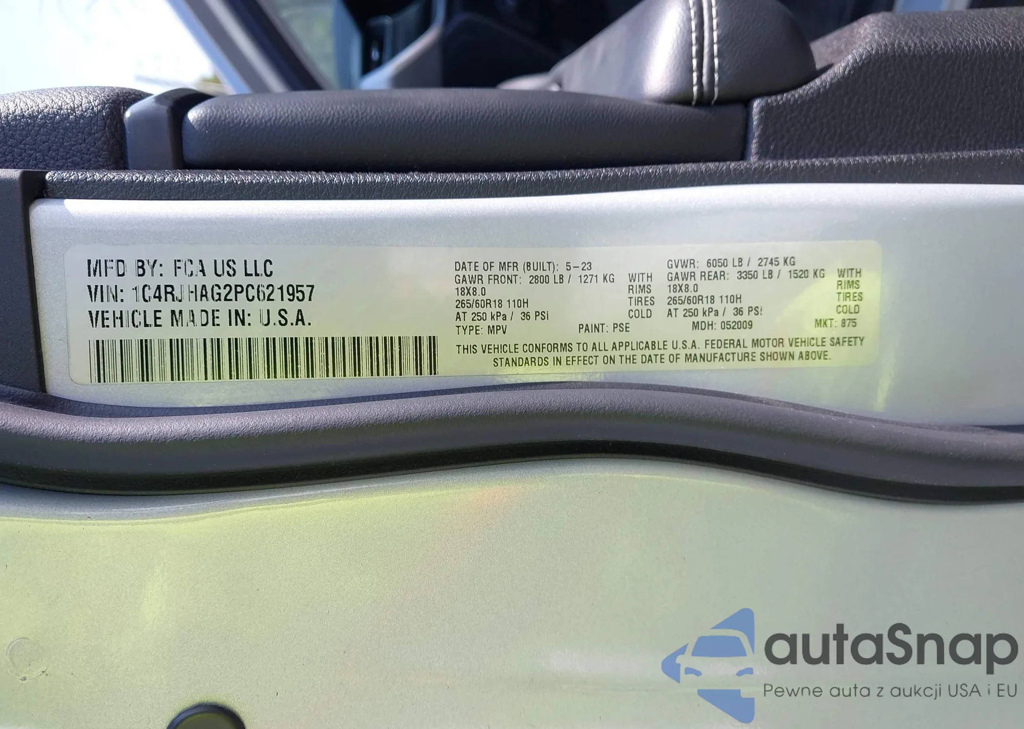 • VIN 1C4RJFAG5HC767436