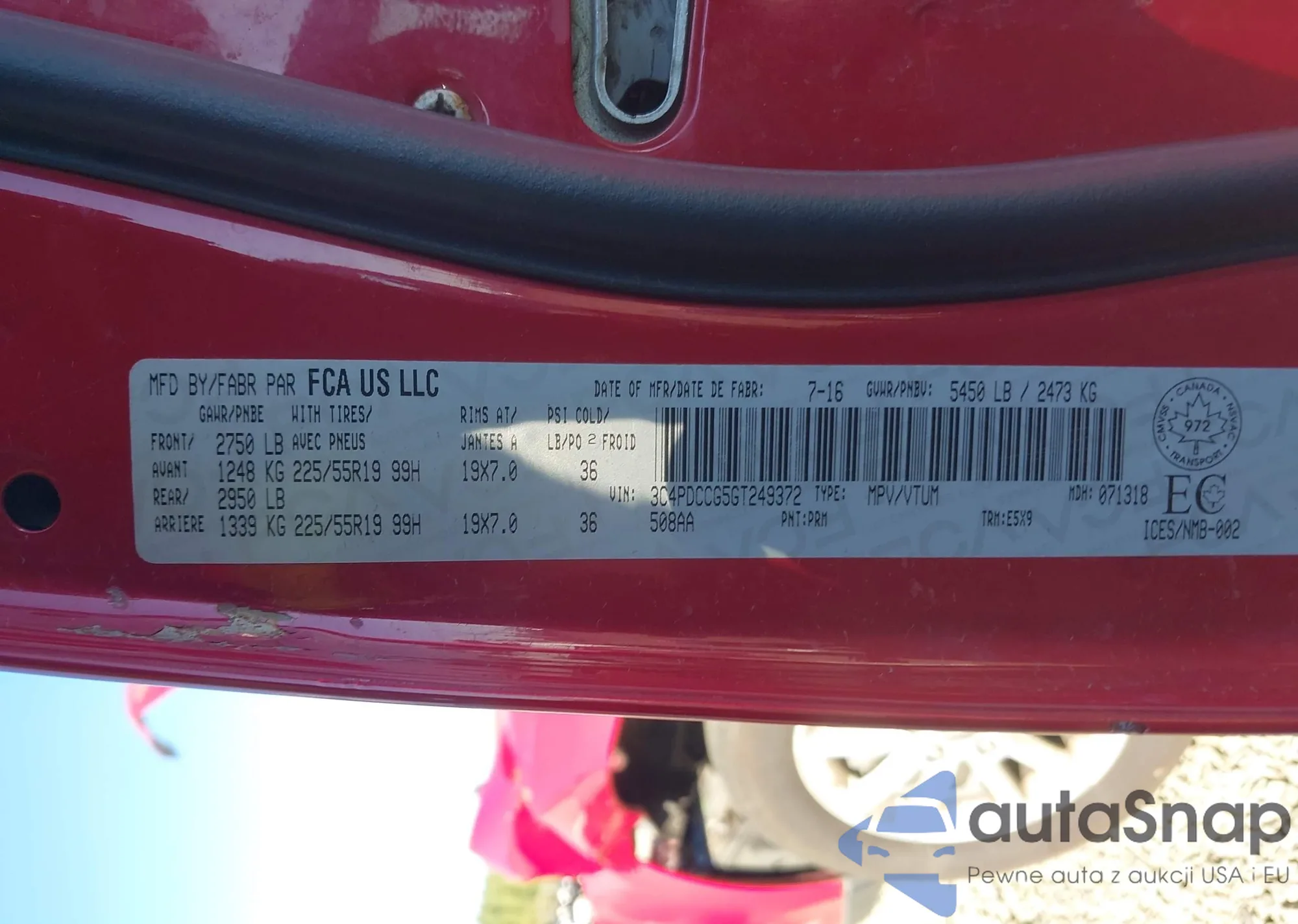 LOT: 43460966 VIN: 3C4PDCCG5GT249372