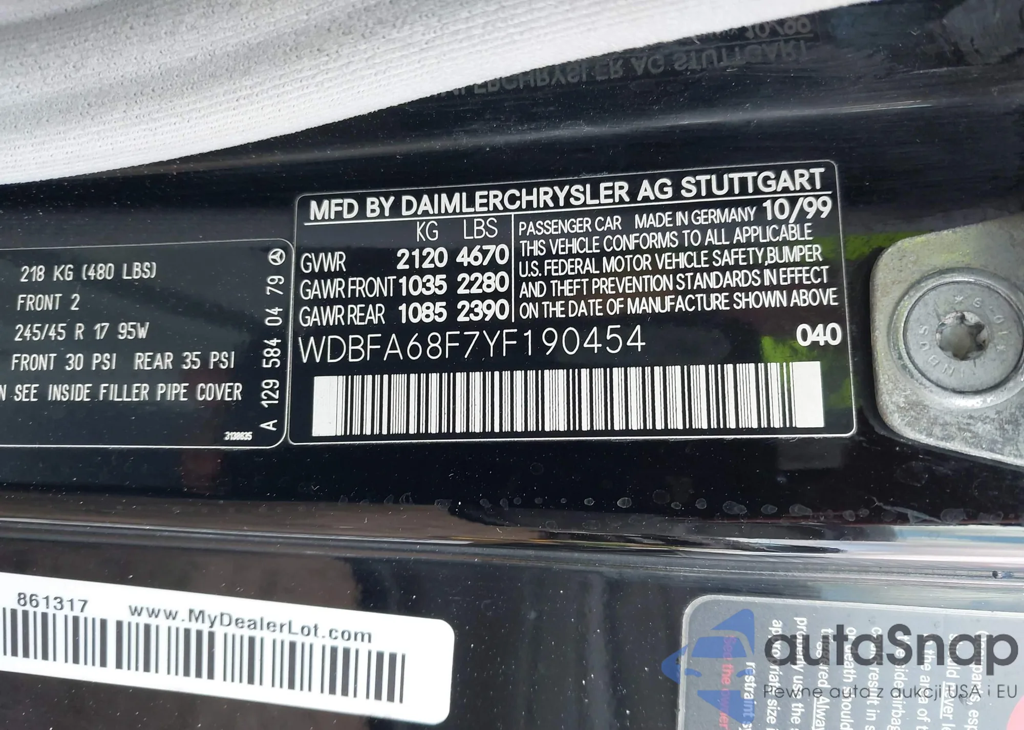 • VIN WDBFA68F7YF190454