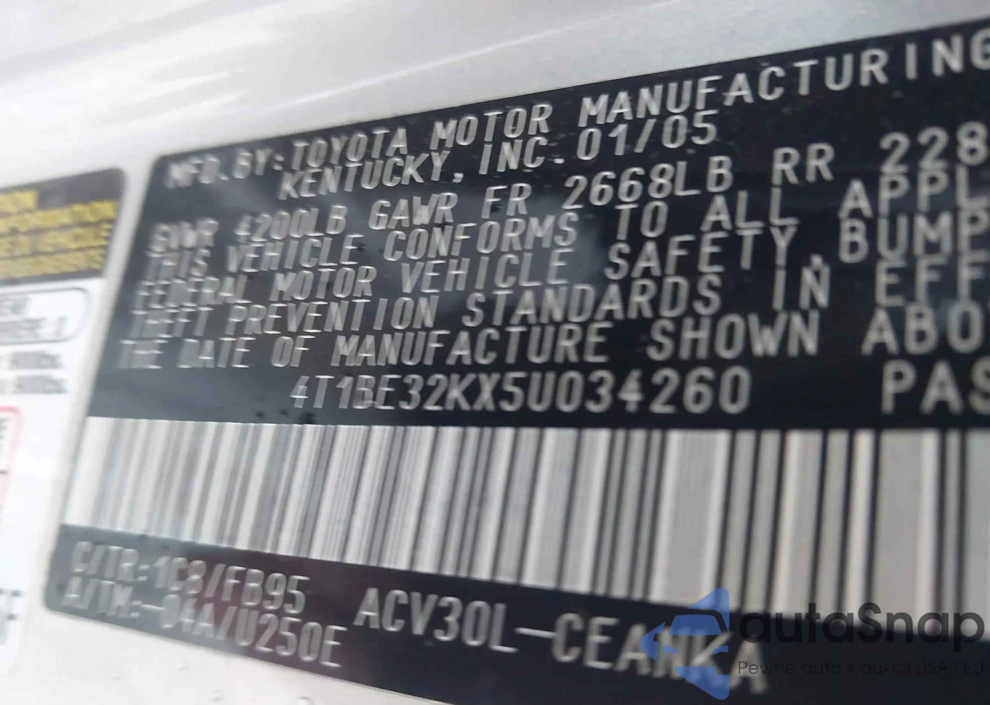 • VIN 4T1BE32KX5U034260