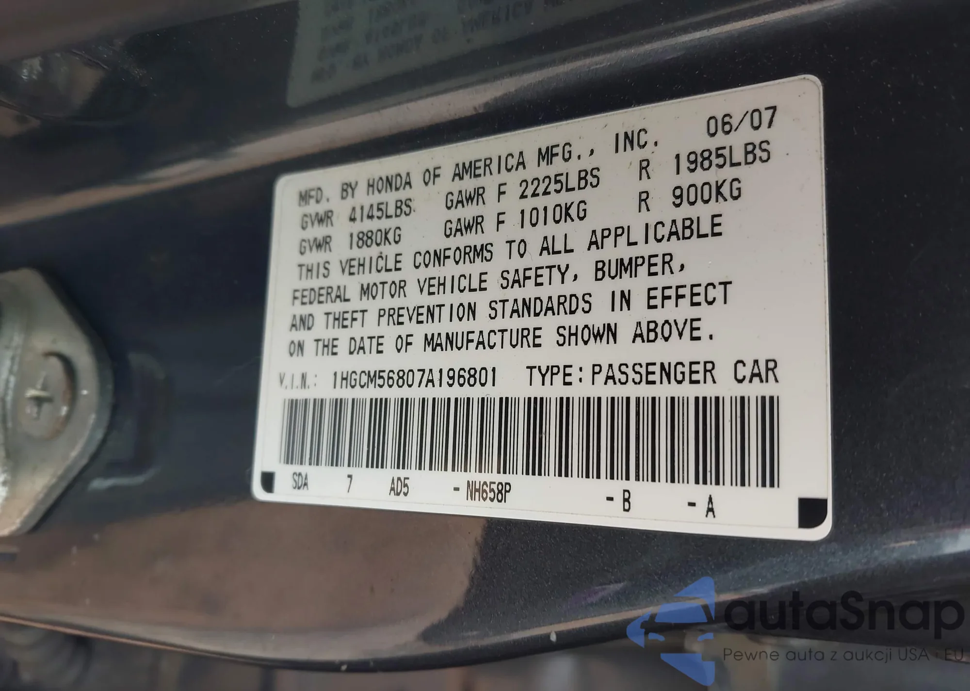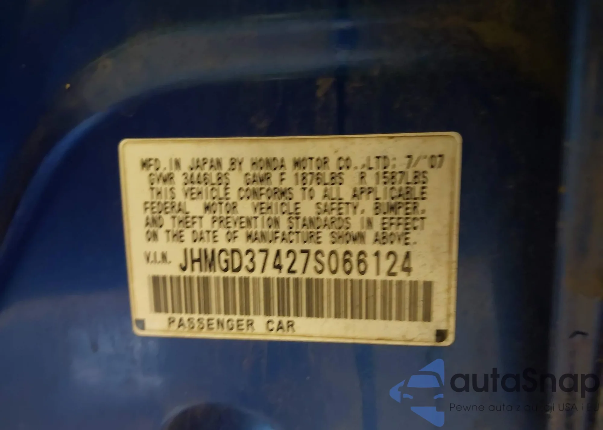 • VIN JHLRD17621S016706