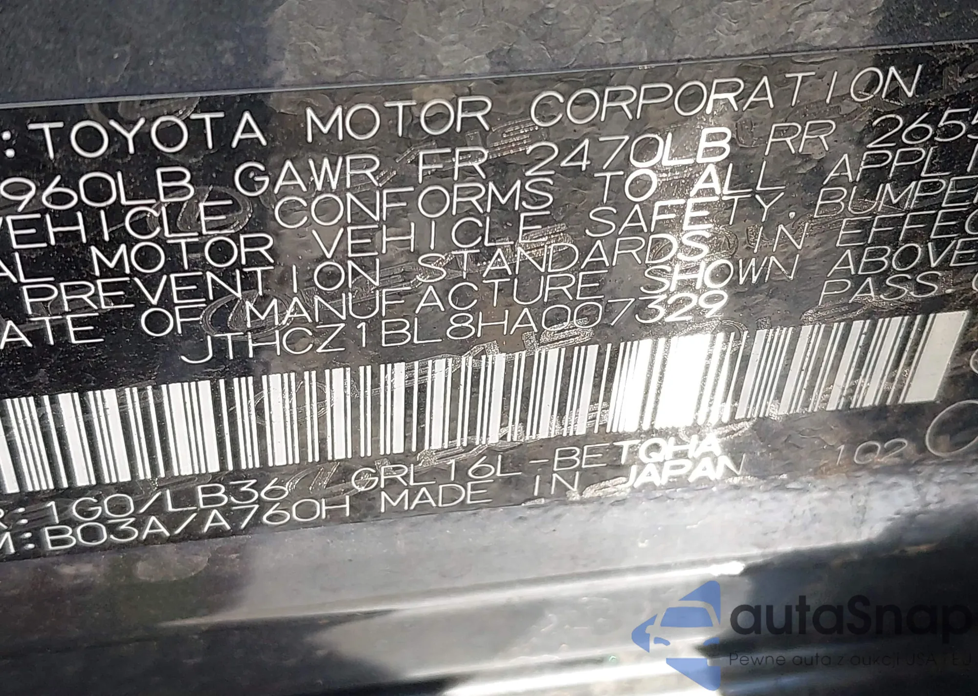 • VIN JTHCZ1BL8HA007329