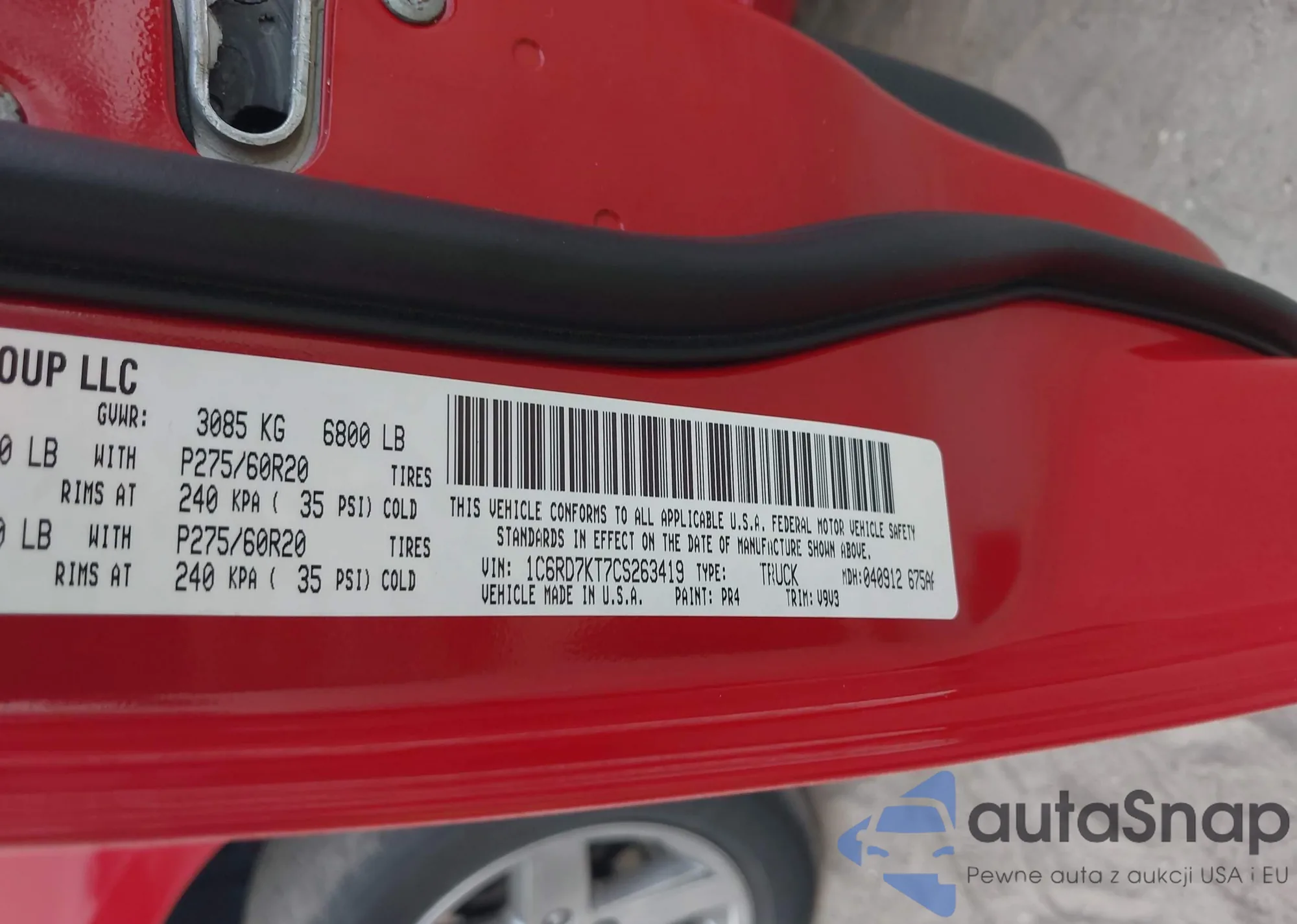 LOT: 43625677 VIN: KMHDH4AE4CU293227